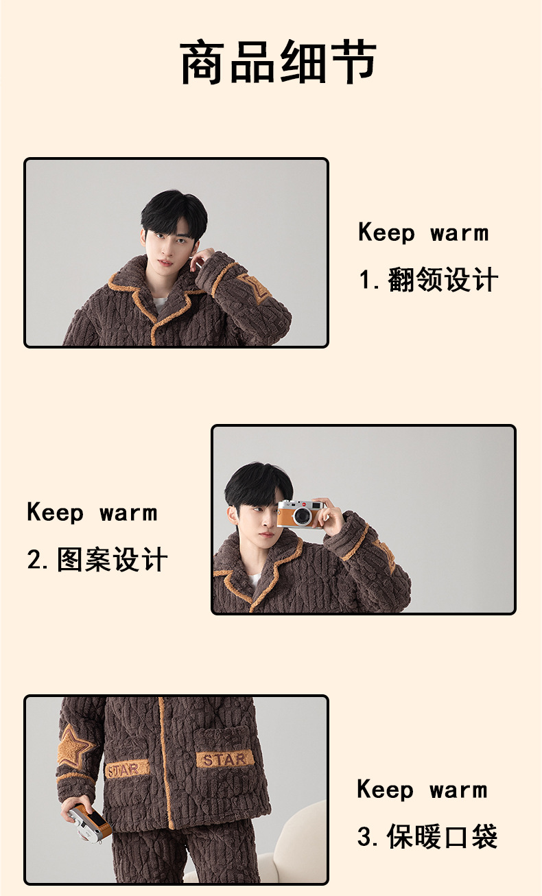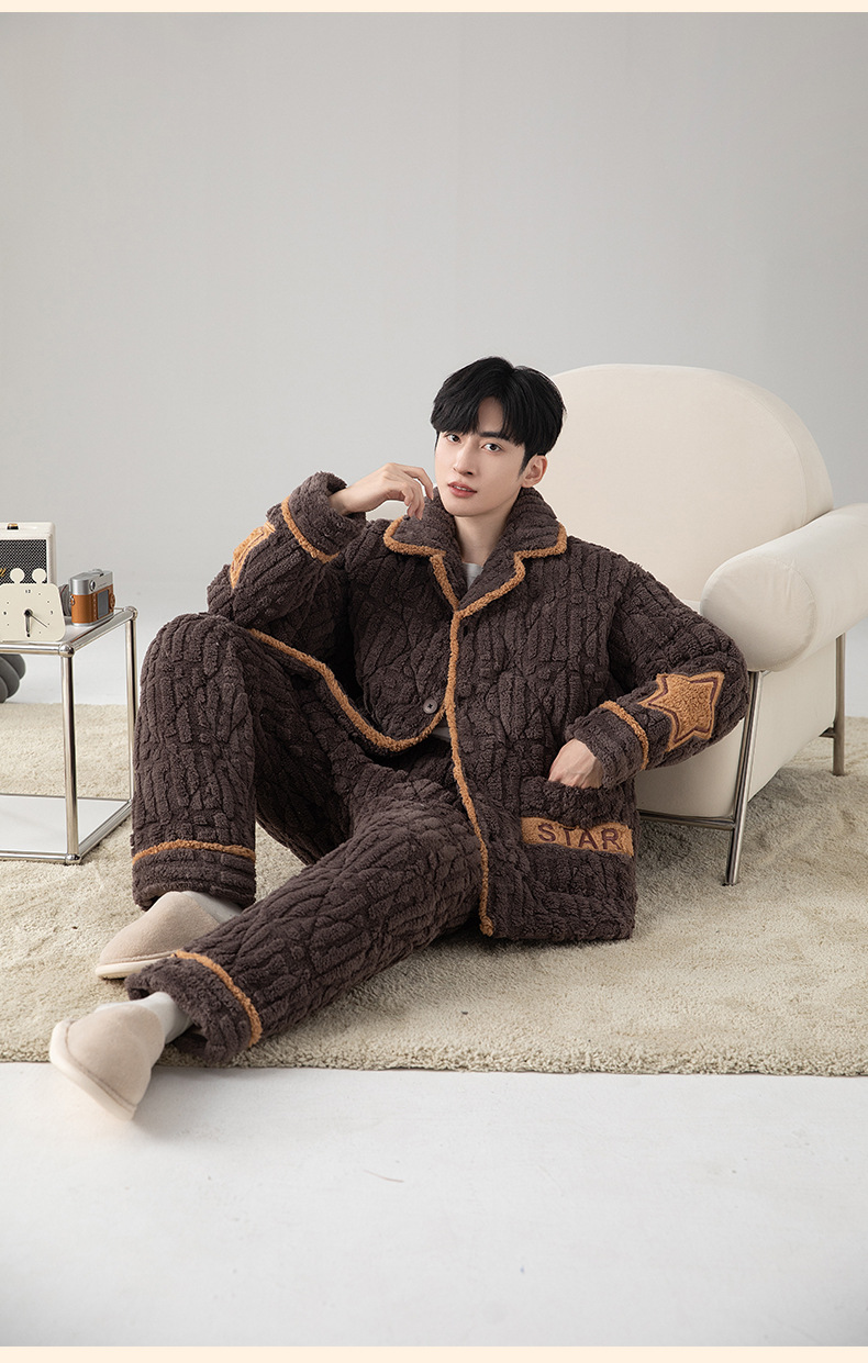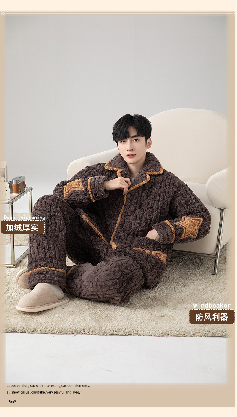 산호 양털 3 층 퀼트 파자마 남성 가을과 겨울이 기모 따뜻한 겨울 2024 새로운 홈 의류 세트