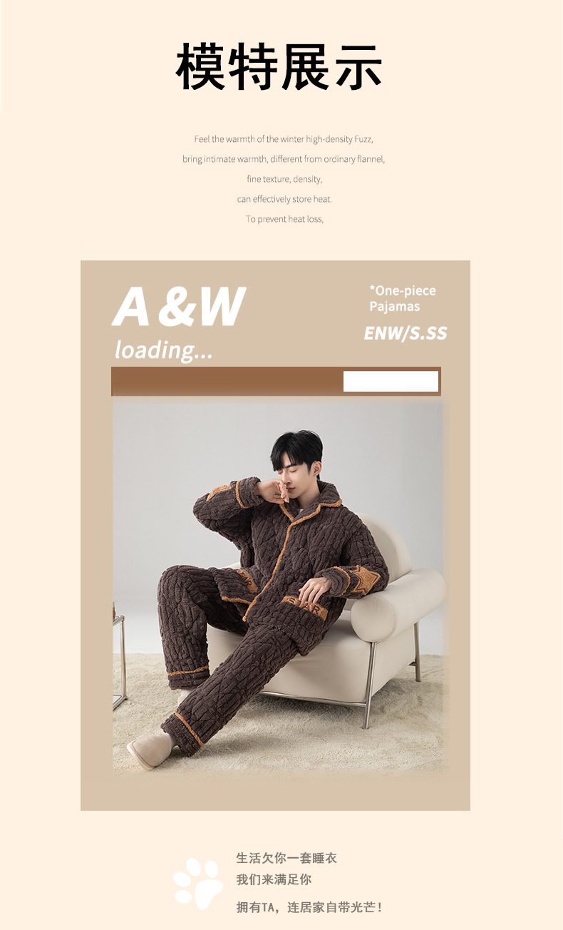 산호 양털 3 층 퀼트 파자마 남성 가을과 겨울이 기모 따뜻한 겨울 2024 새로운 홈 의류 세트스토어 가기
