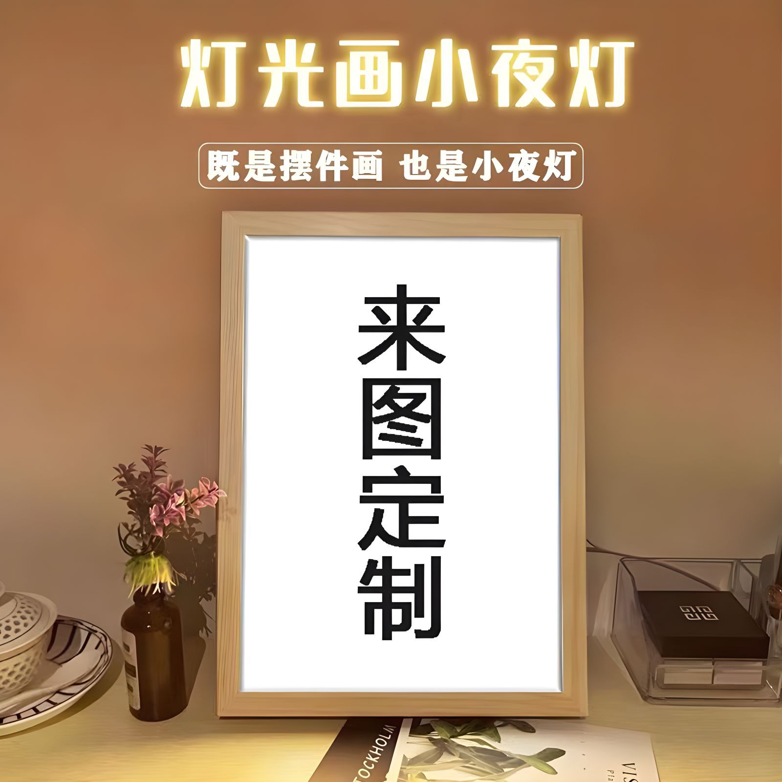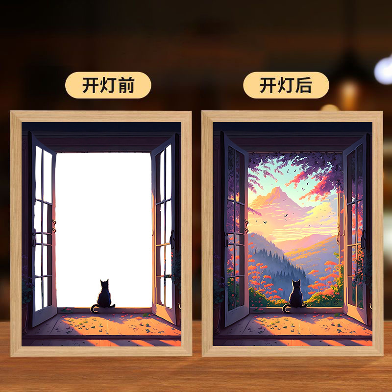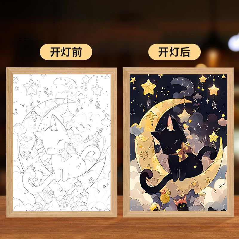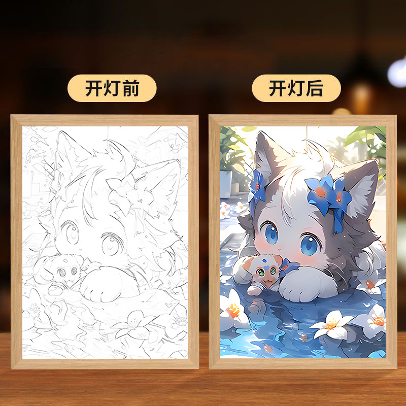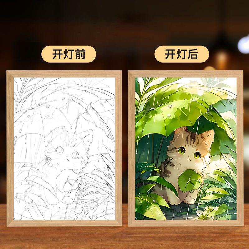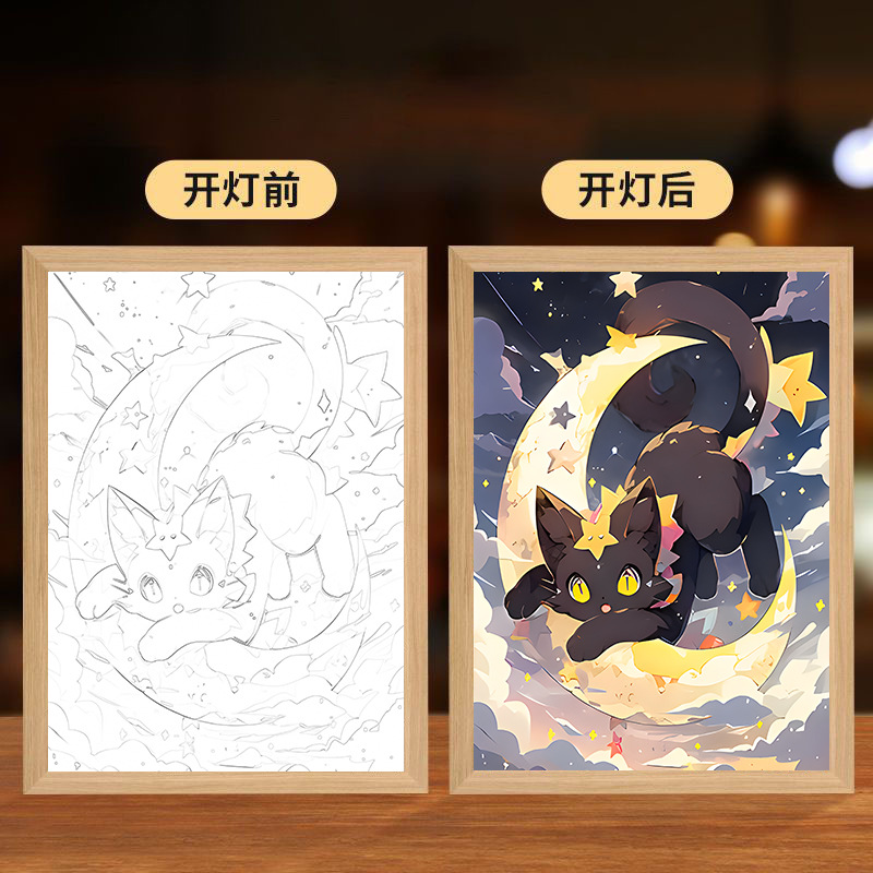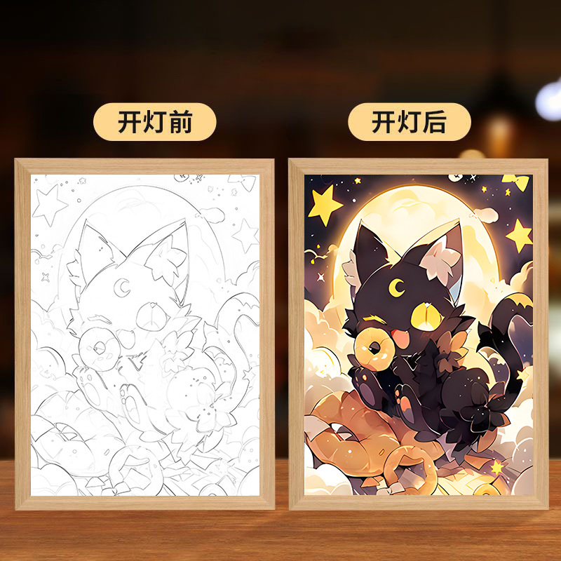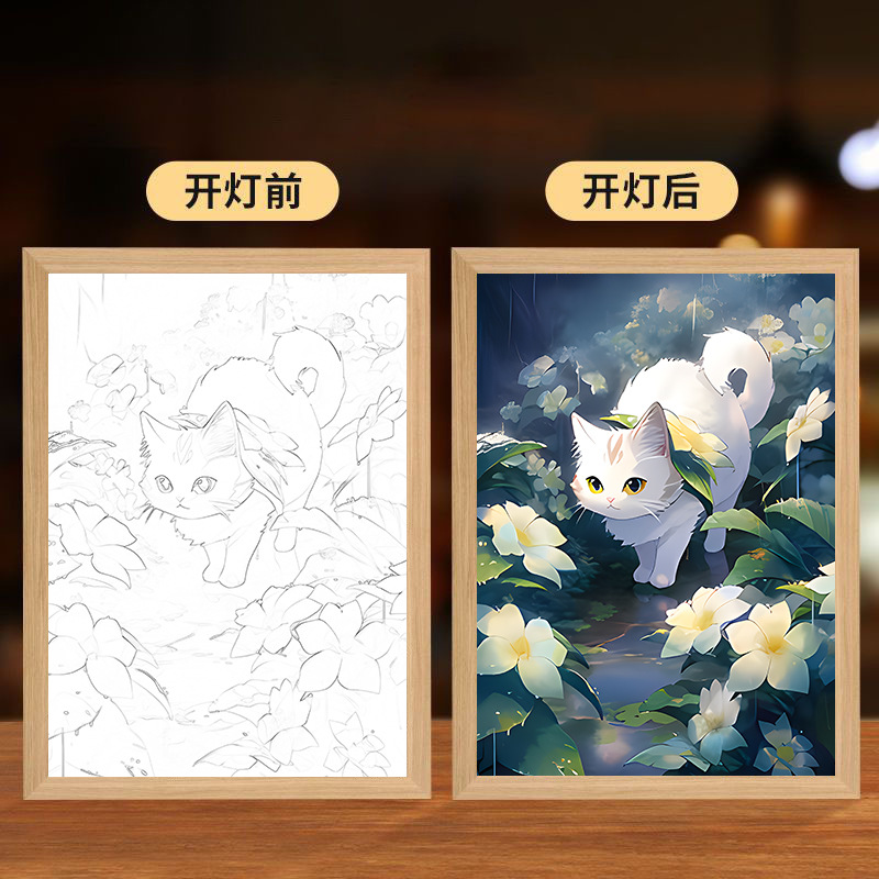 귀여운 애완 동물 키티 조명 그림 소녀 선물 치유 침대 옆 테이블 장식품 키티 데스크탑 작은 장식품 사진 프레임 그림스토어 가기