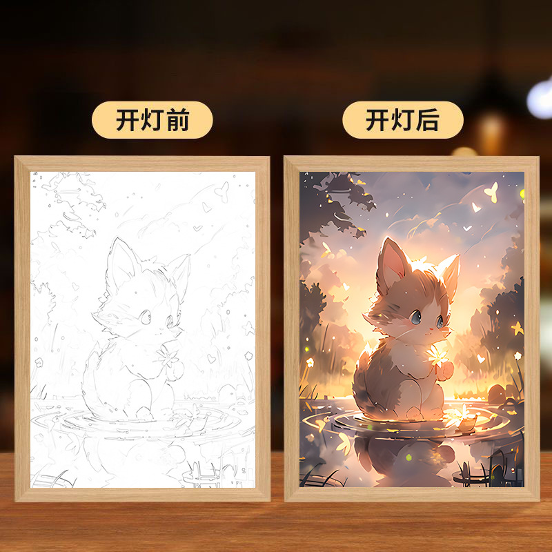 귀여운 애완 동물 키티 조명 그림 소녀 선물 치유 침대 옆 테이블 장식품 키티 데스크탑 작은 장식품 사진 프레임 그림