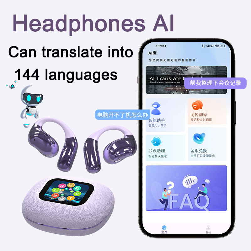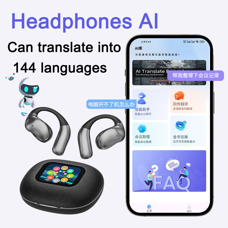 공장 LCD 풀 컬러 터치 스크린 OWS 블루투스 헤드셋 YJ33 오픈 가죽 질감 블루투스 헤드셋 CE/FCCID