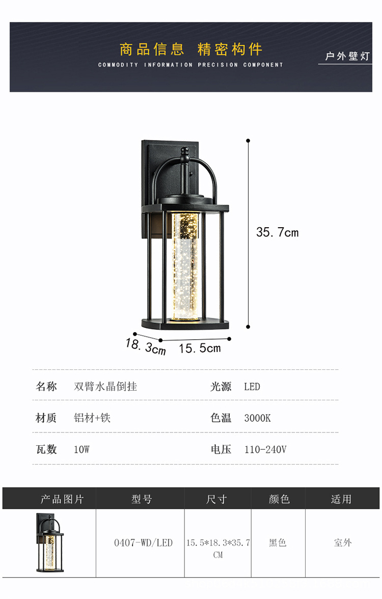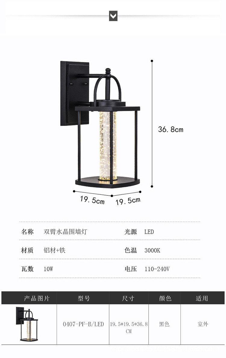 국경 공장 직접 공급 야외 방수 크리스탈 벽 램프 안뜰 빌라 정원 복도 발코니 통로 벽 램프 샹들리에