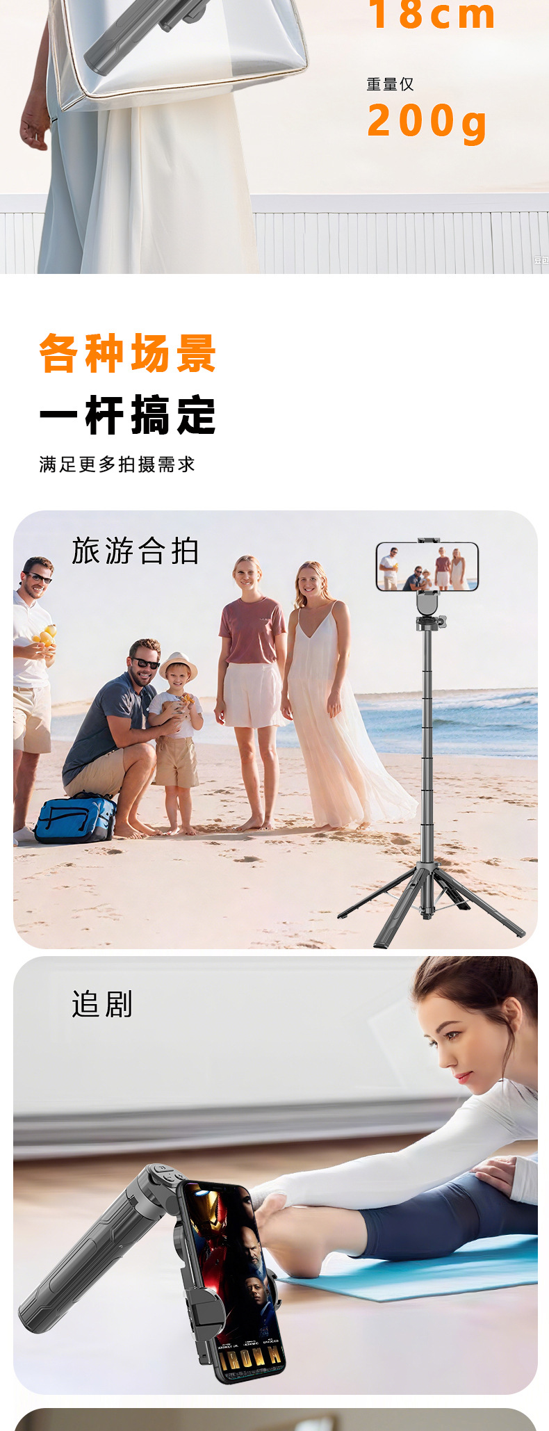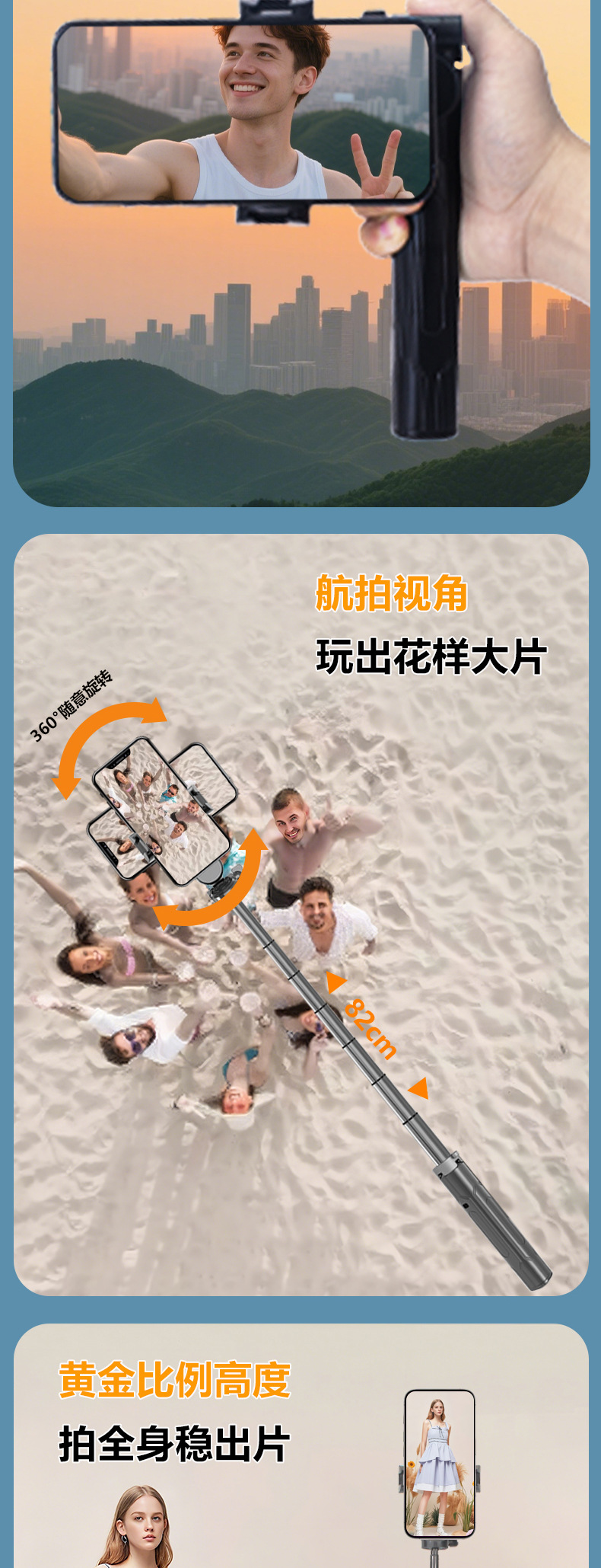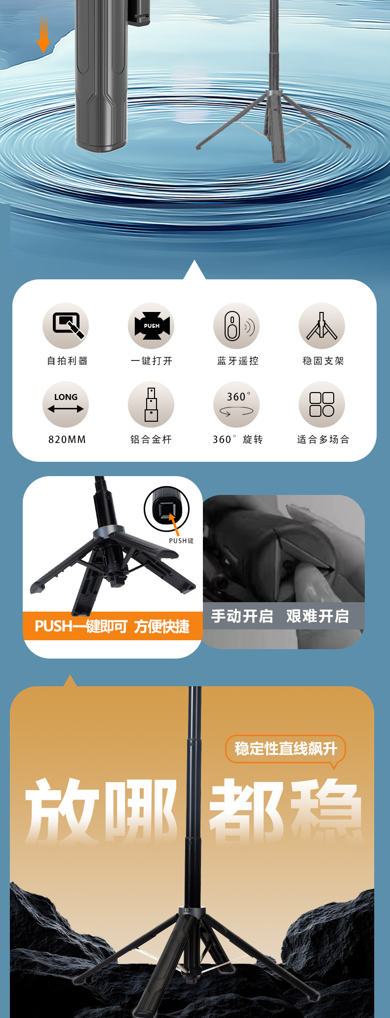 새로운 블루투스 셀카봉, 휴대폰 범용, 흔들림 방지, 안정적인 촬영, 라이브 방송, 사진 촬영, 브이로그 필수품, 휴대용 스탠드
