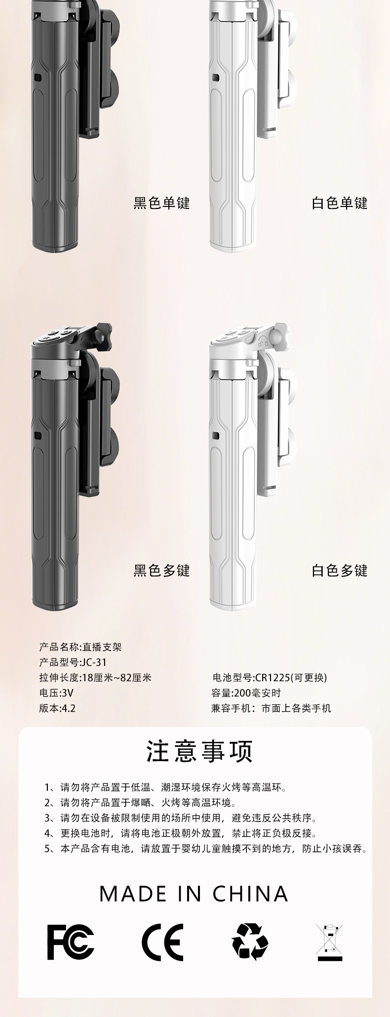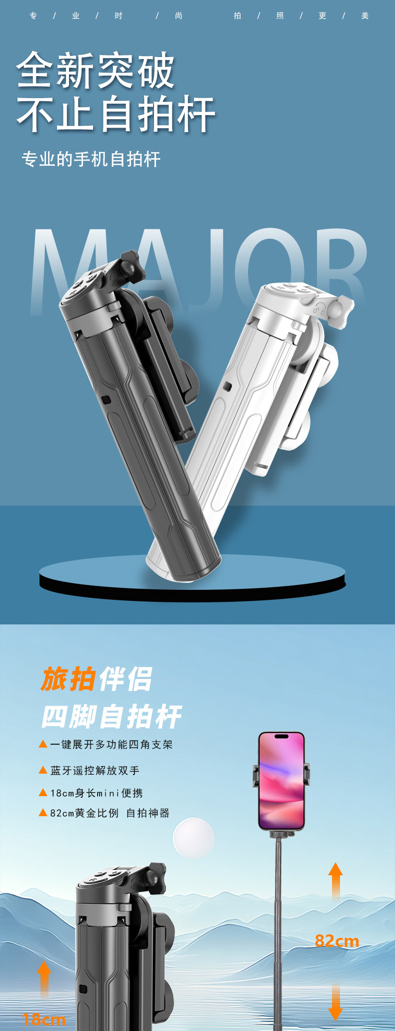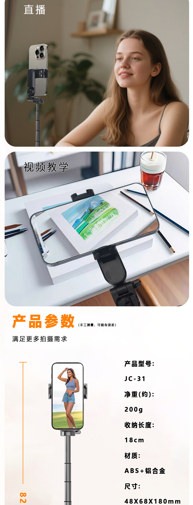 새로운 블루투스 셀카봉, 휴대폰 범용, 흔들림 방지, 안정적인 촬영, 라이브 방송, 사진 촬영, 브이로그 필수품, 휴대용 스탠드
