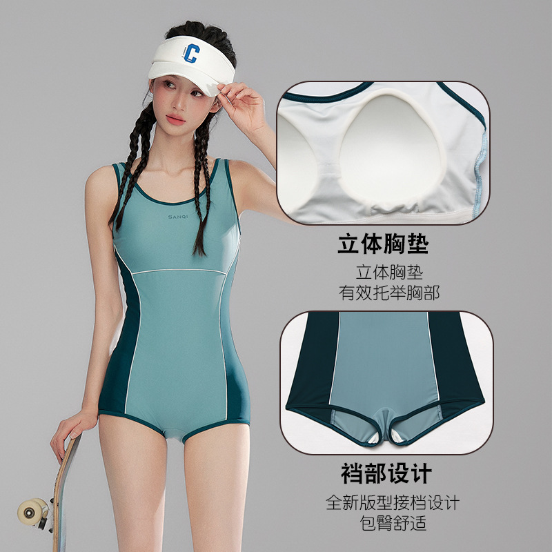 Sanqi 원피스 수영복 여성 2024 년 여름 새로운 섹시한 휴가 온천 수영복 벨리 커버 슬리밍 수영복