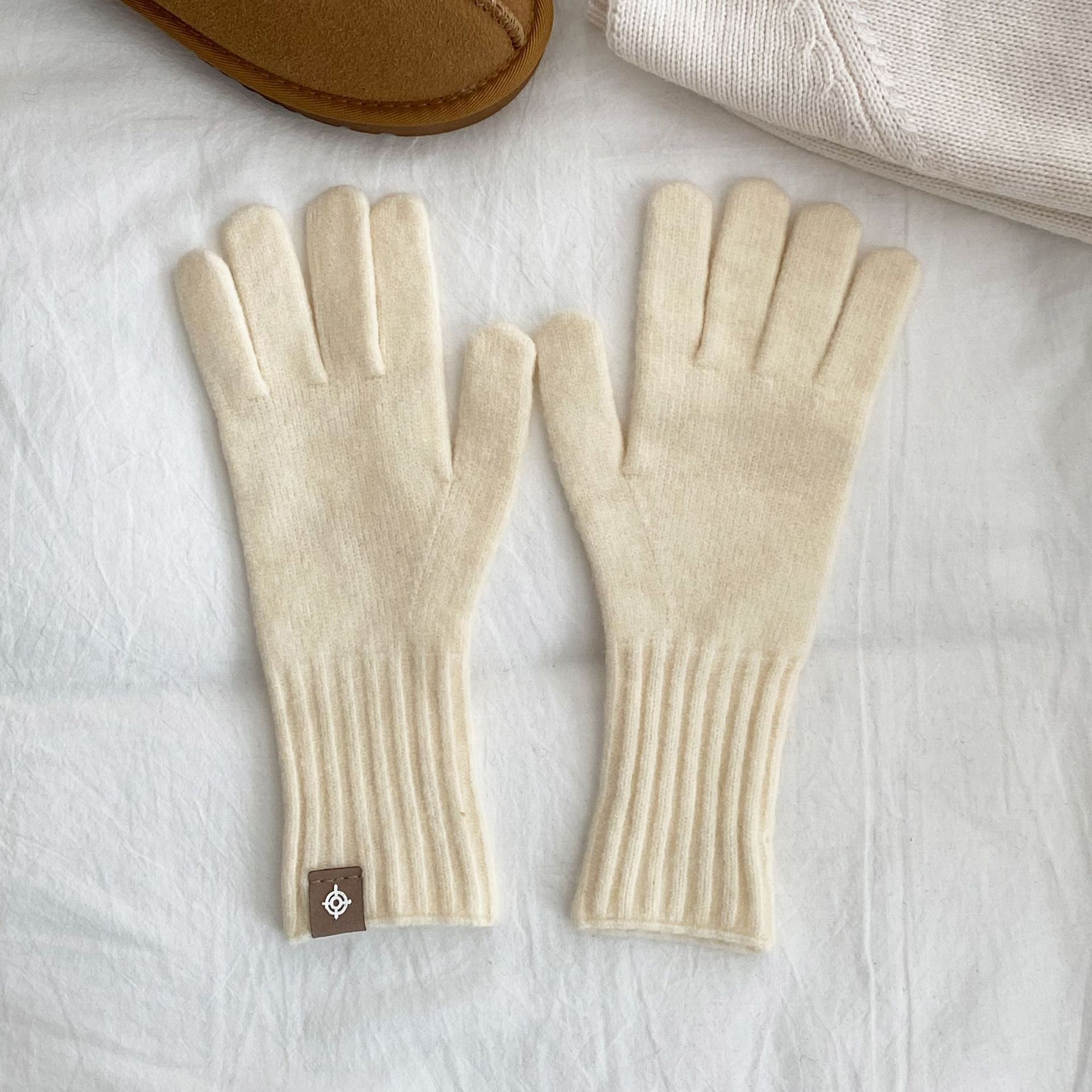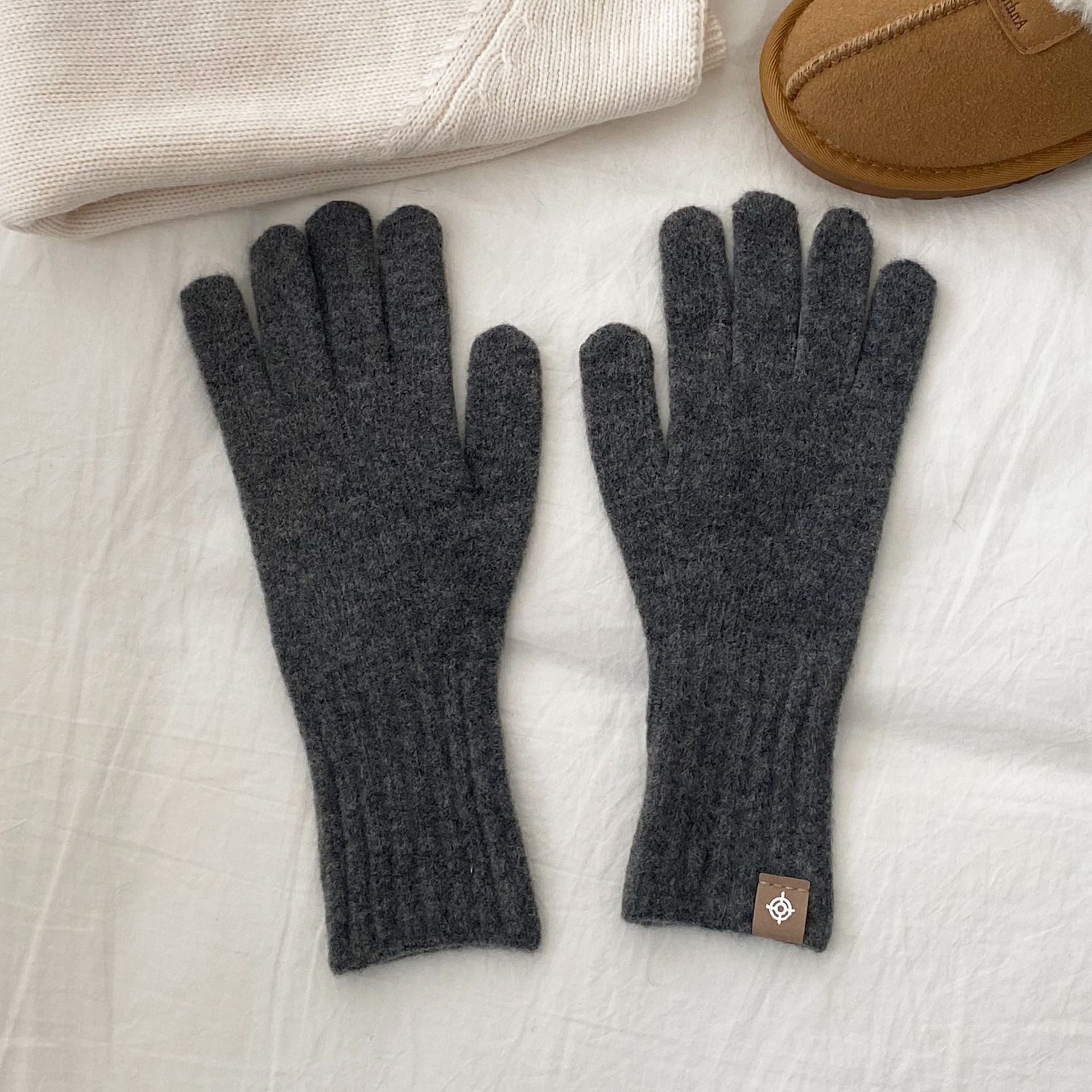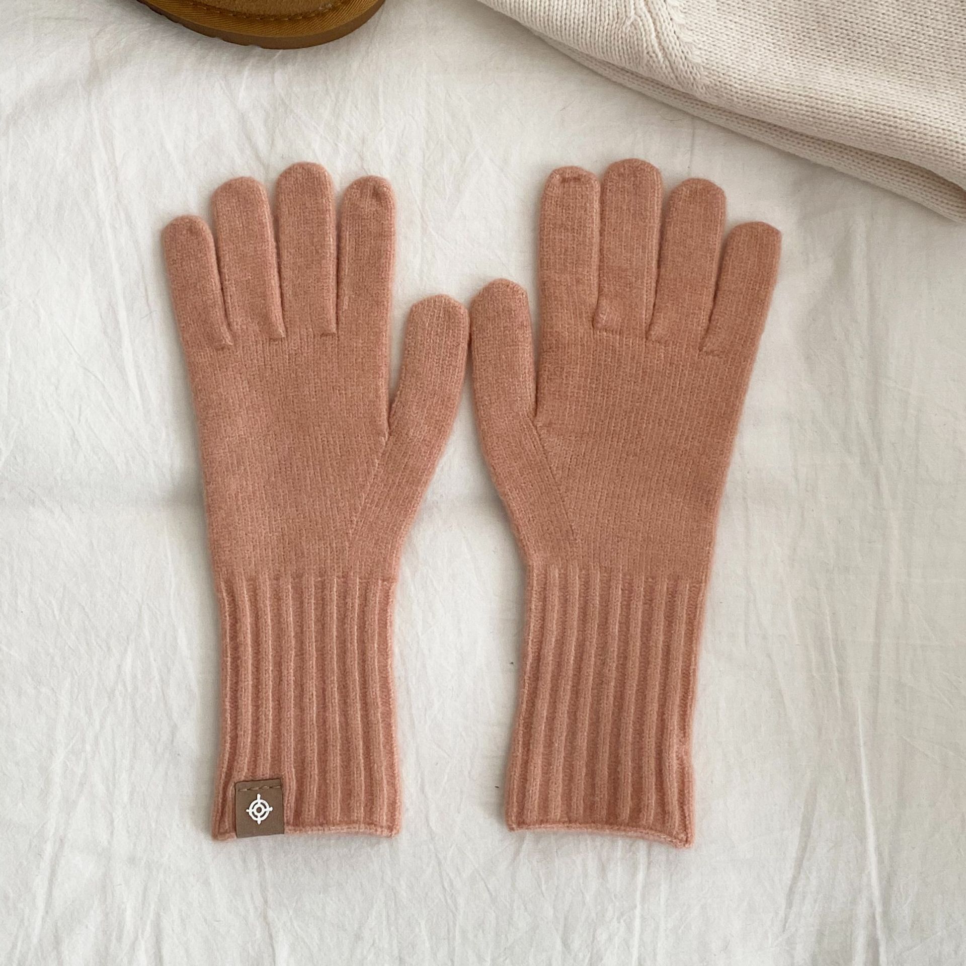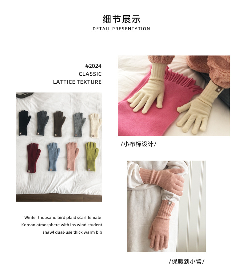 한국 주문 디자이너 니트 장갑 여성 고급 분위기 터치 스크린 장갑 따뜻한 다섯 손가락 장갑