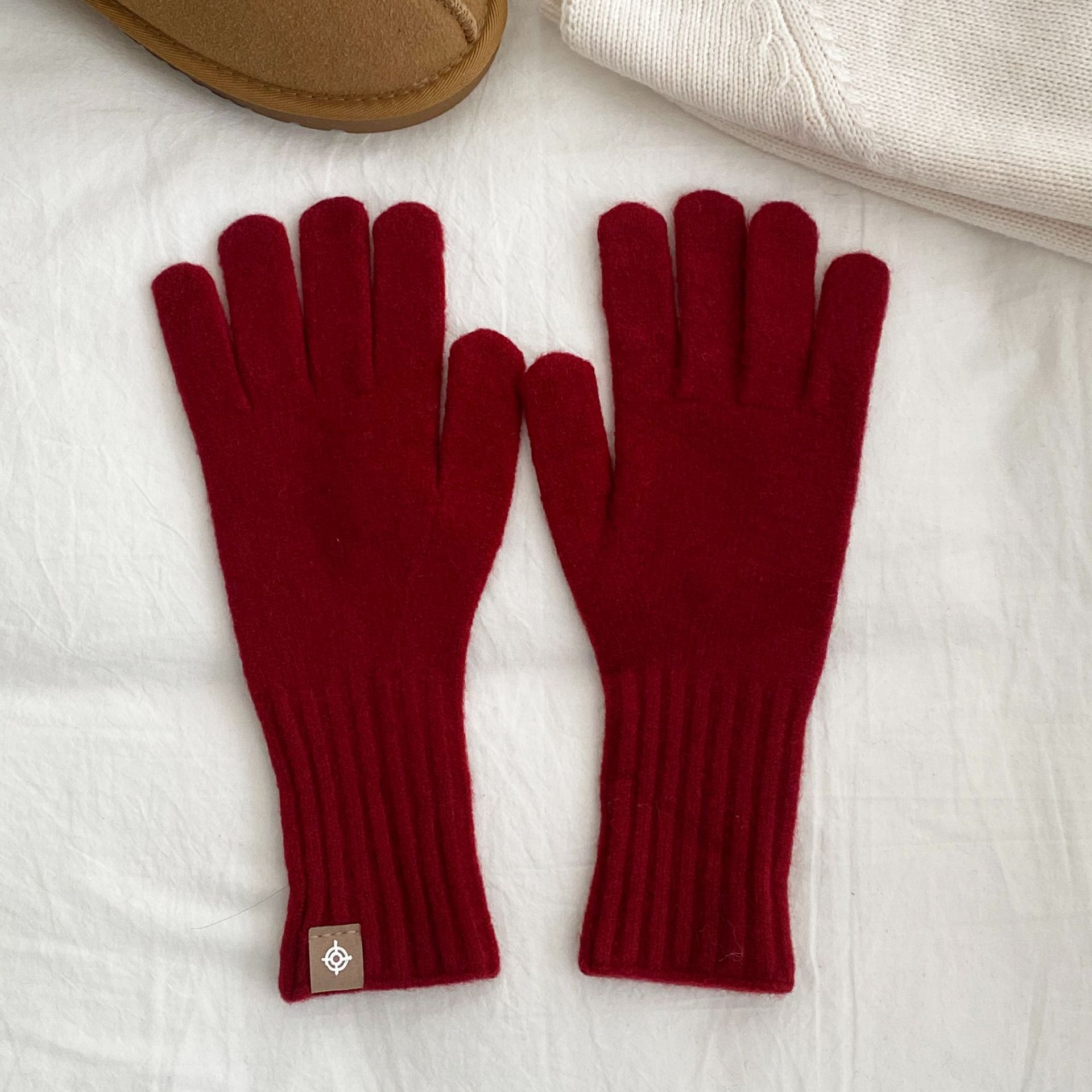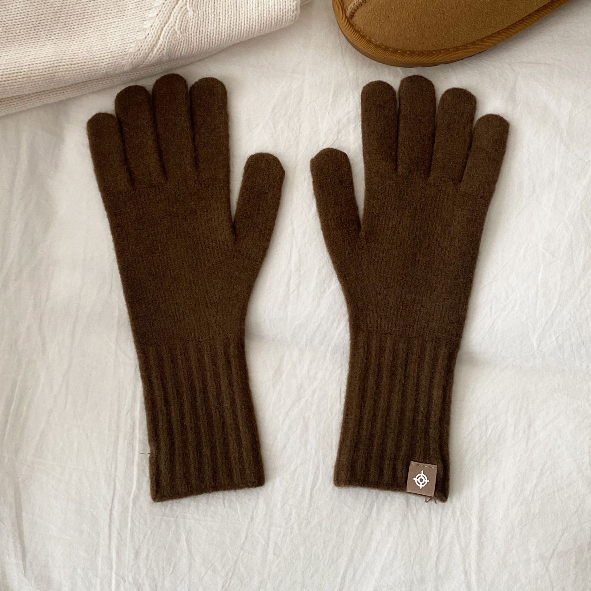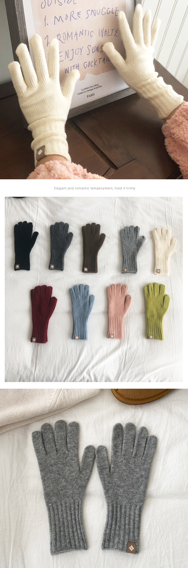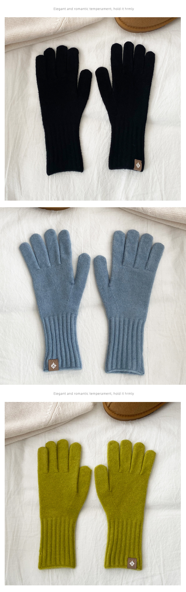한국 주문 디자이너 니트 장갑 여성 고급 분위기 터치 스크린 장갑 따뜻한 다섯 손가락 장갑