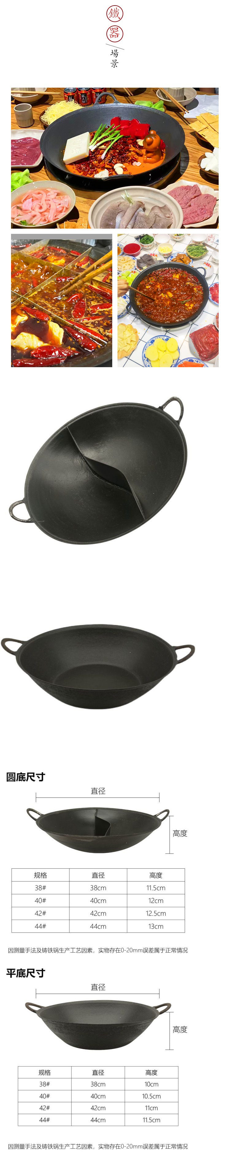 • 높이 44cm, 바닥이 평평한 원앙 냄비, 두꺼워진 11cm