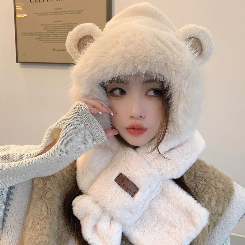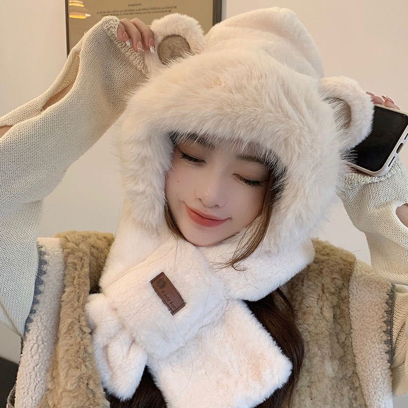 겨울 곰 모자 귀 보호기 스카프 후드 원피스 헤드 캡 사이클링 따뜻한 냉장 귀여운 겨울 봉제 스카프스토어 가기