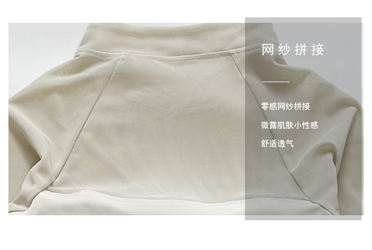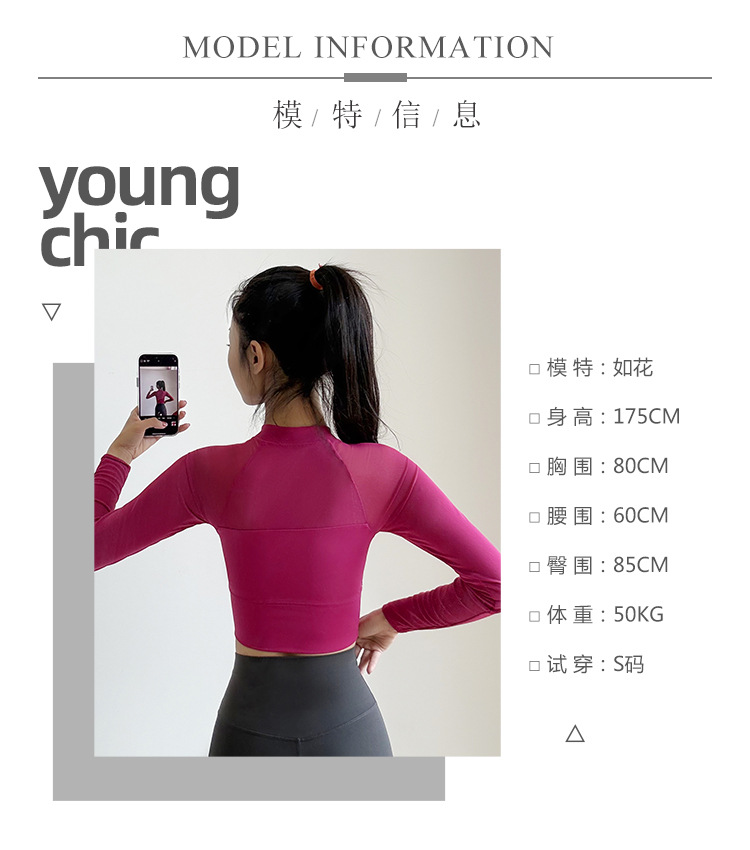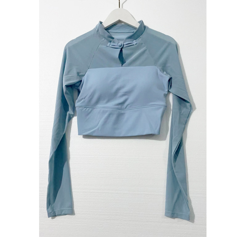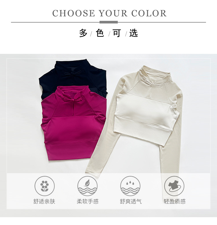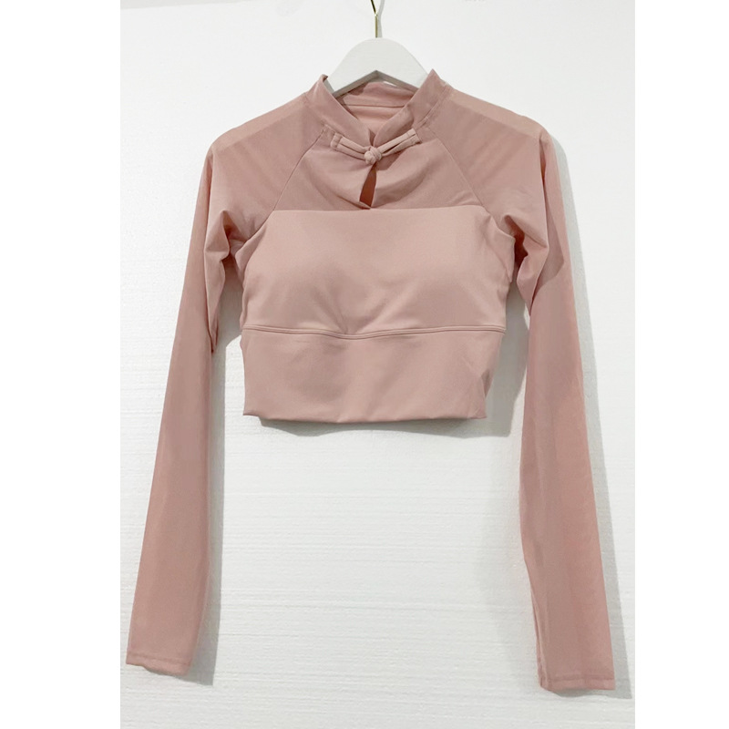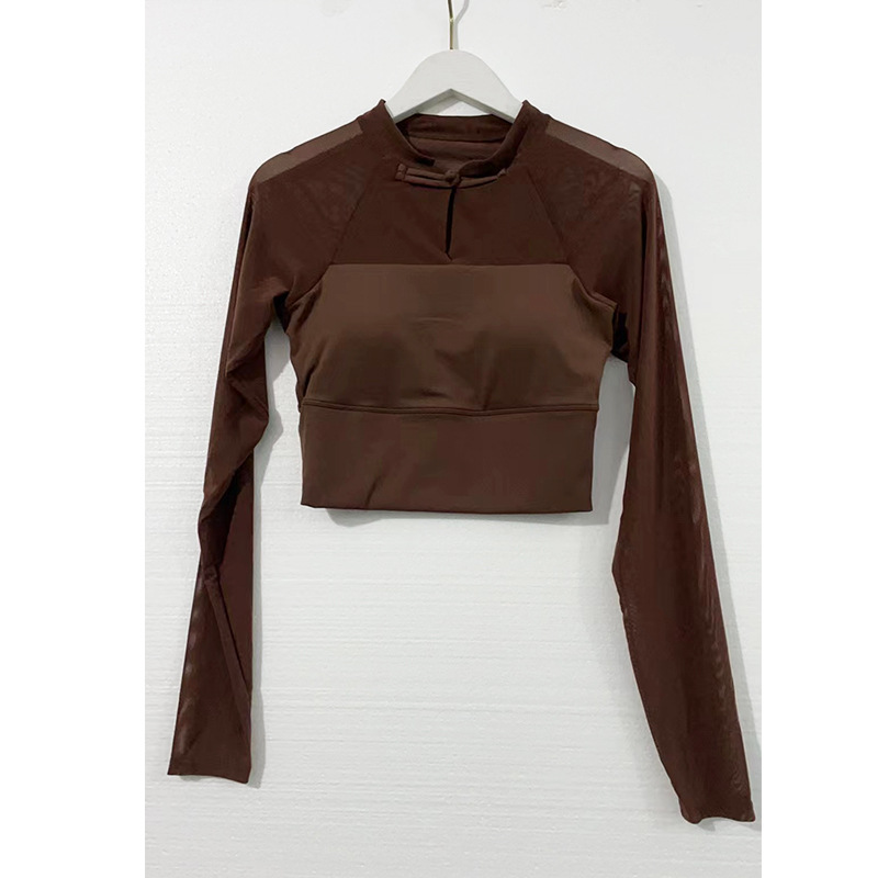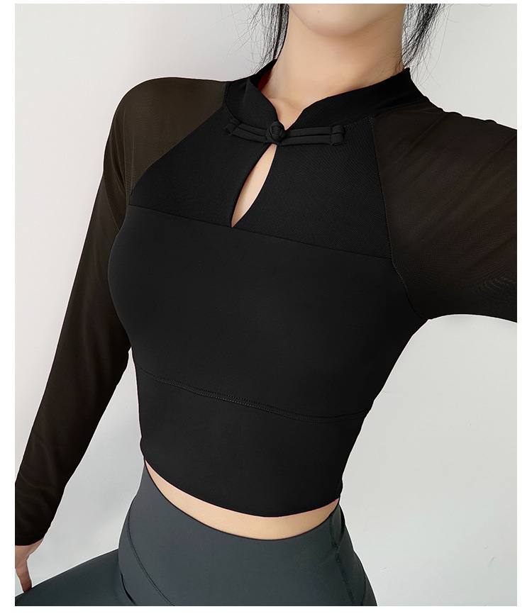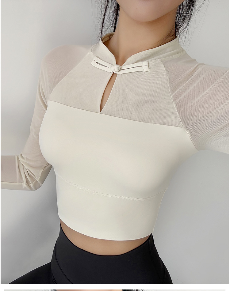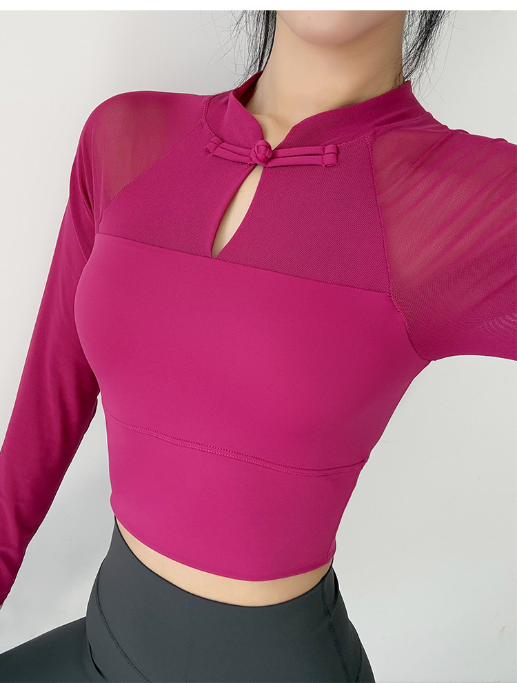 요가 의류 긴팔 Guofeng 칼라 피트니스 통기성 티셔츠 새로운 중국 메쉬 스티칭 스포츠 탑