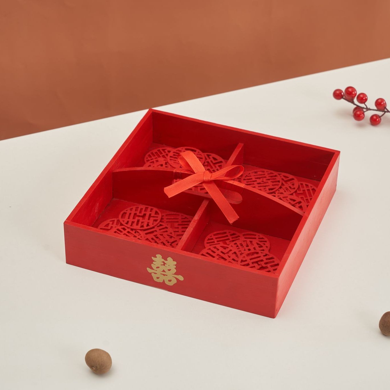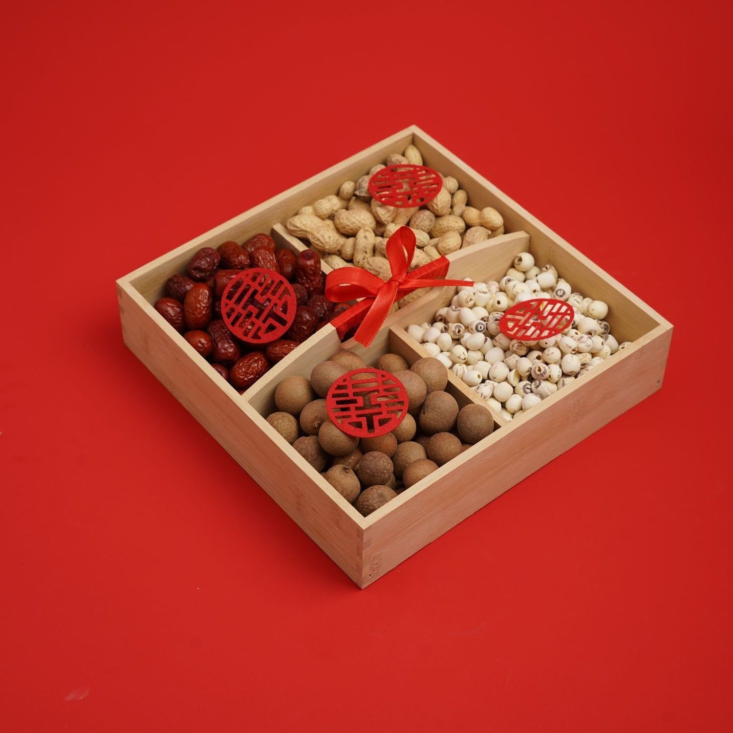 • [대나무] 빨간색 휴대용 4각형 격자 + 작은 행복한 단어 10개