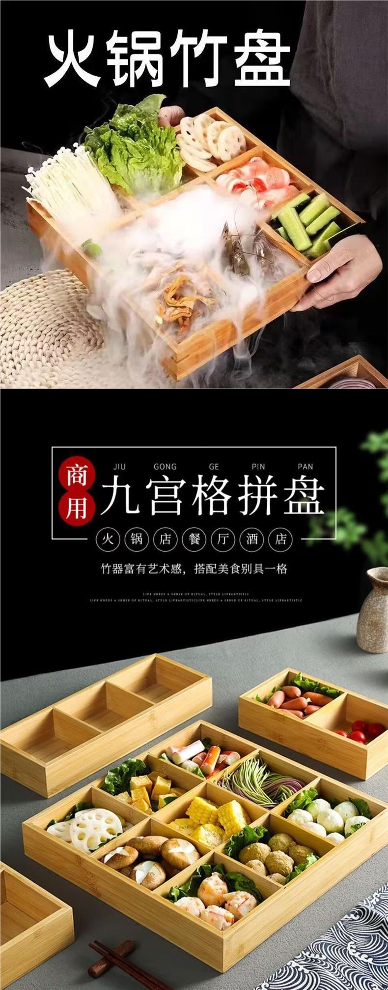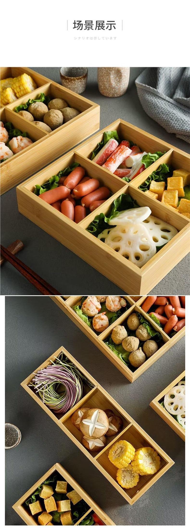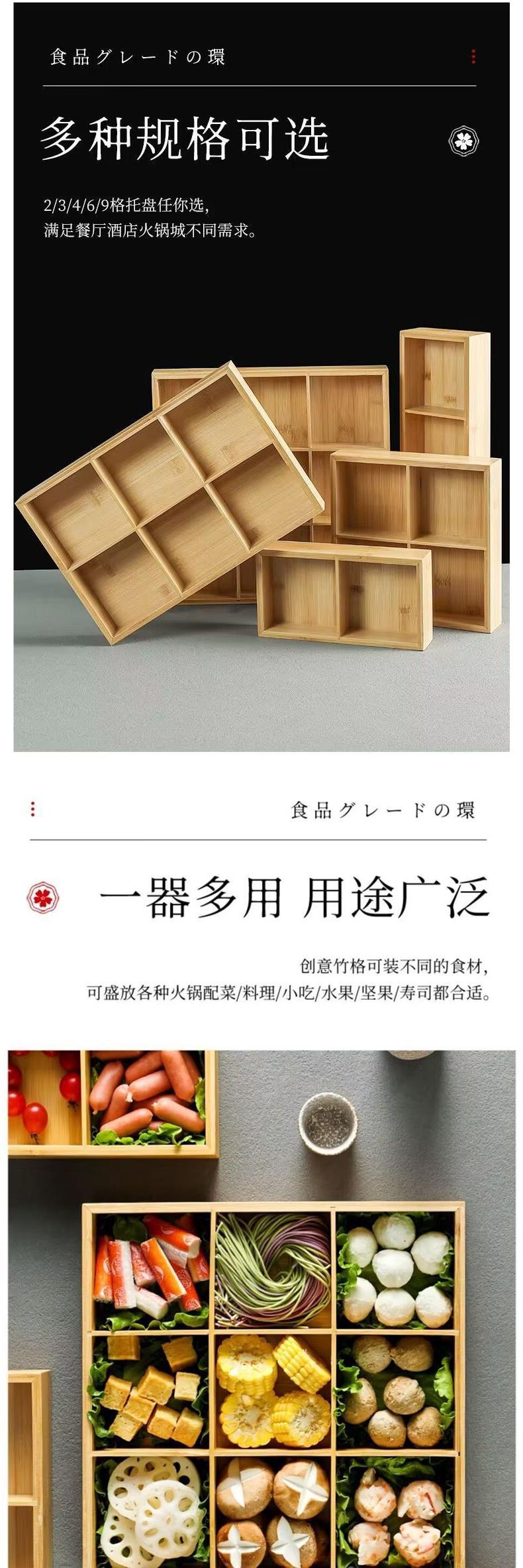 Jiugongge Platter 일본 뜨거운 냄비 전문 대나무 및 목재 트레이 식기 접시 분할 조식 쟁반 야채 인터넷 인기스토어 가기