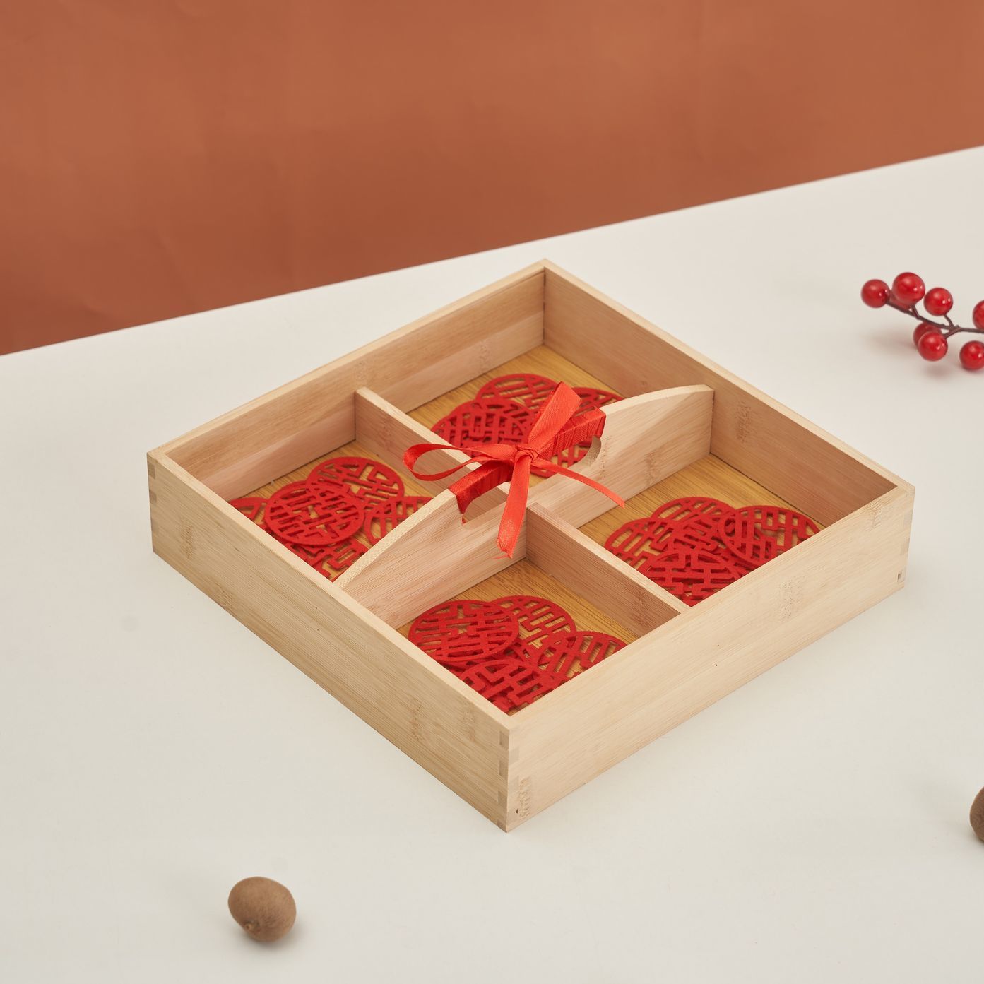 • [대나무] 빨간색 휴대용 4각형 격자 + 작은 행복한 단어 30개