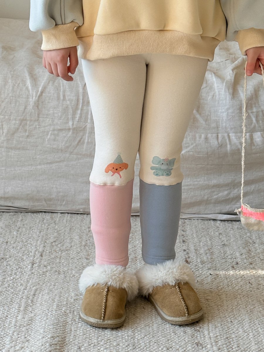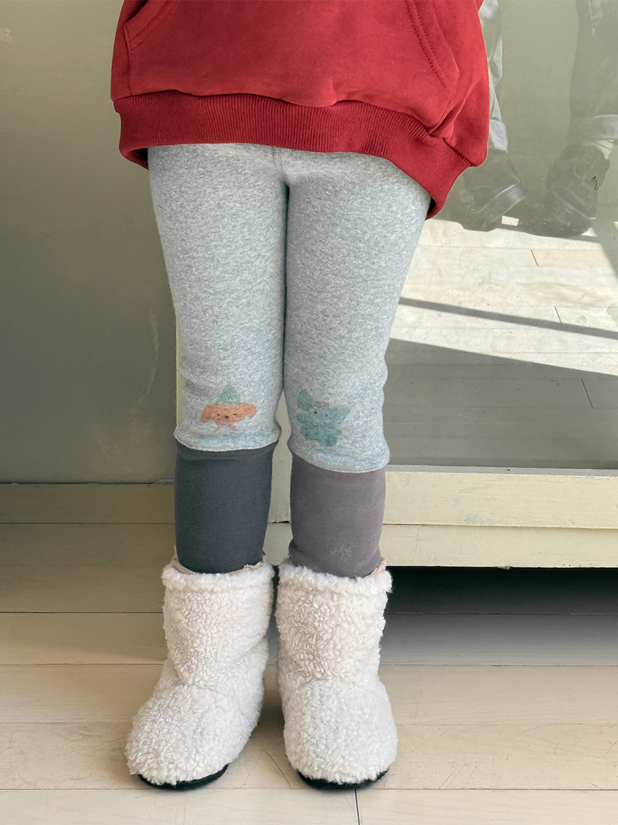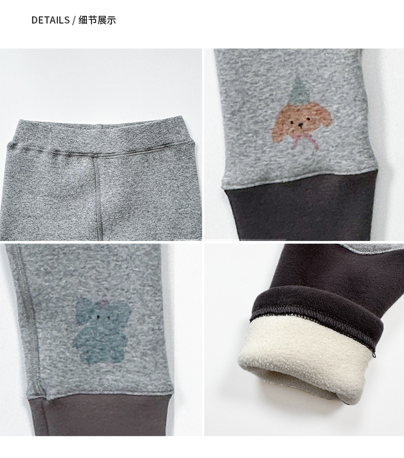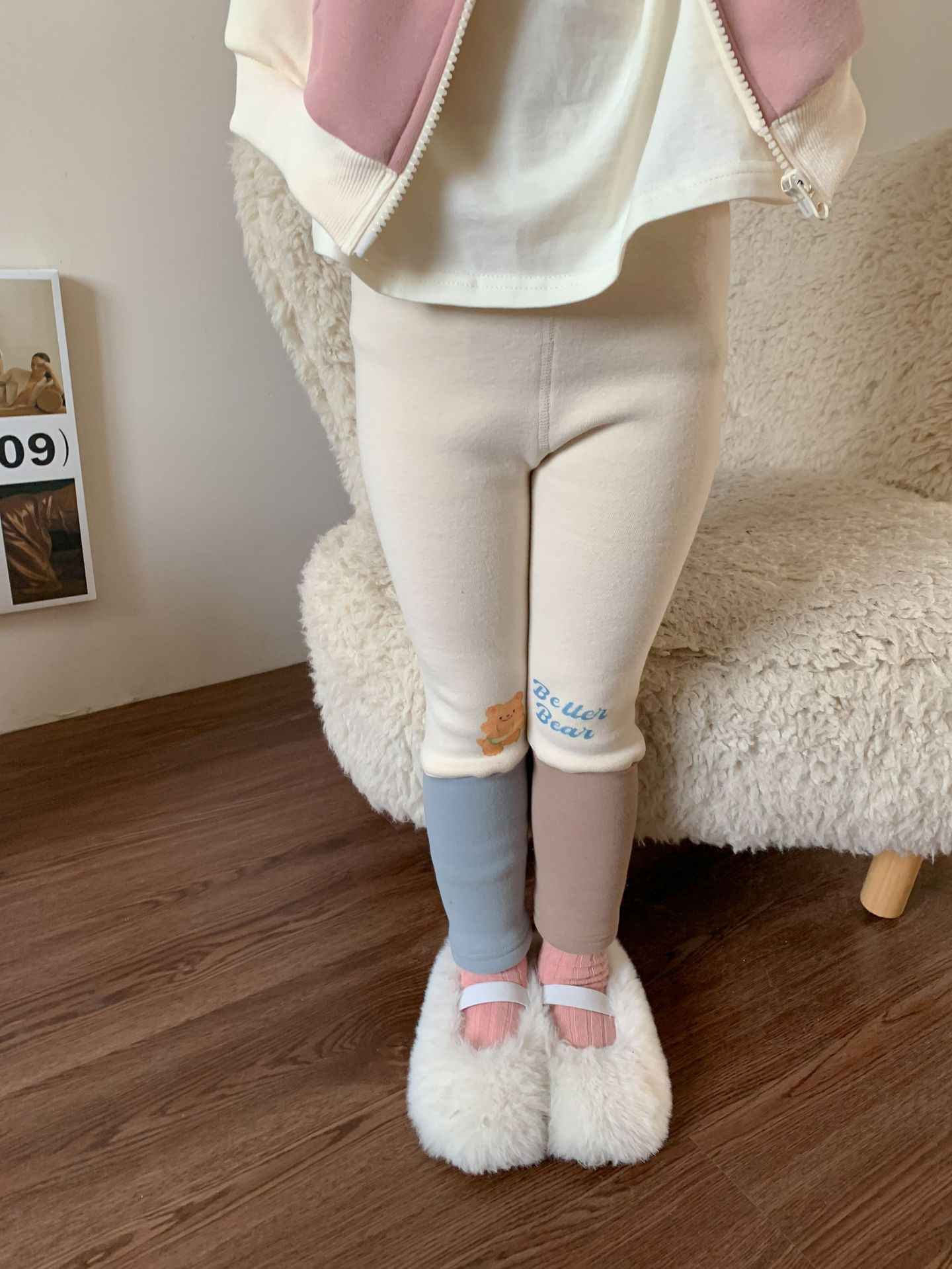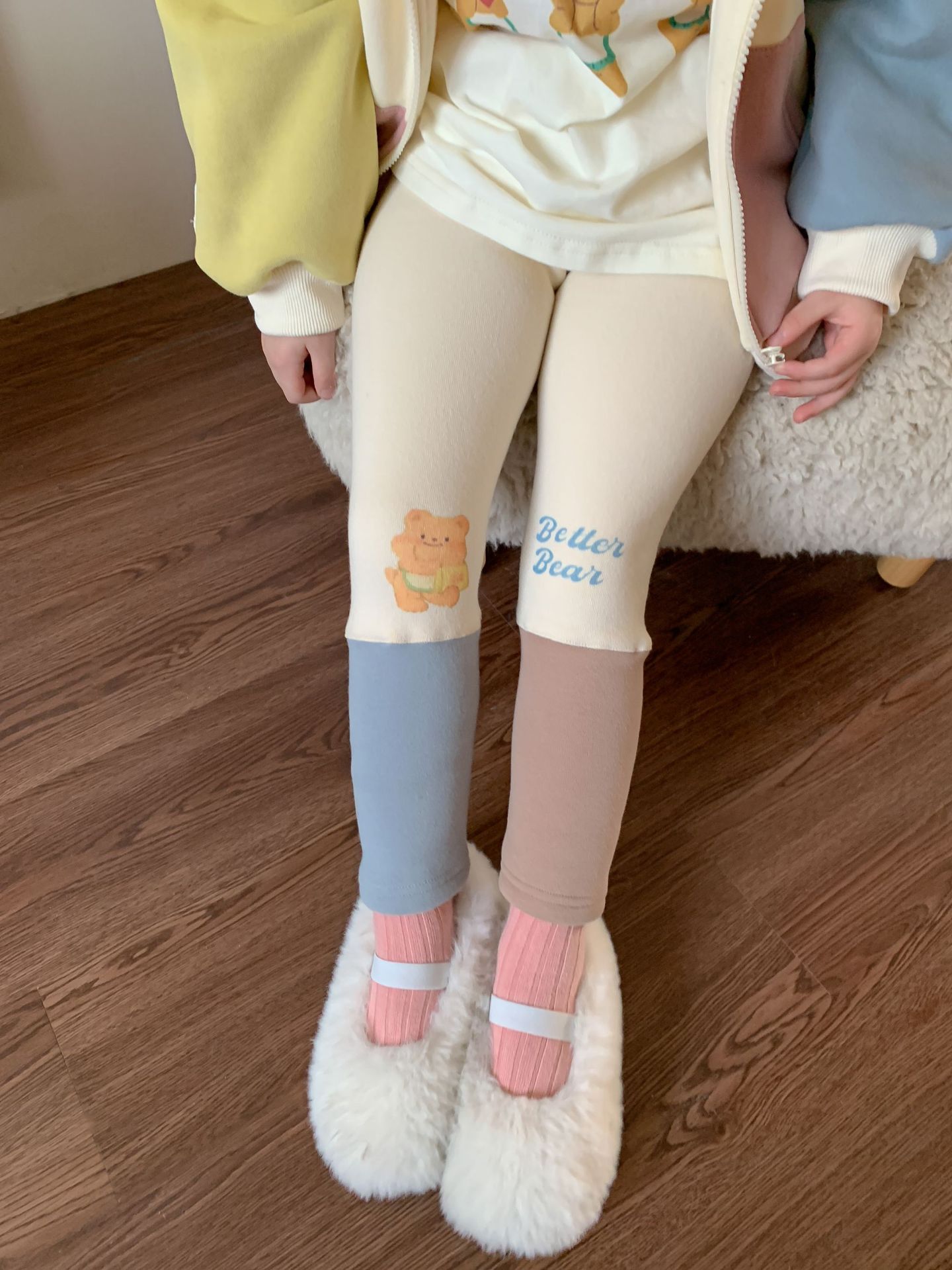 버우드 아동복 소녀 기모 레깅스 2024 겨울 새 어린이 한국 만화 바지 아기 소녀 바지스토어 가기