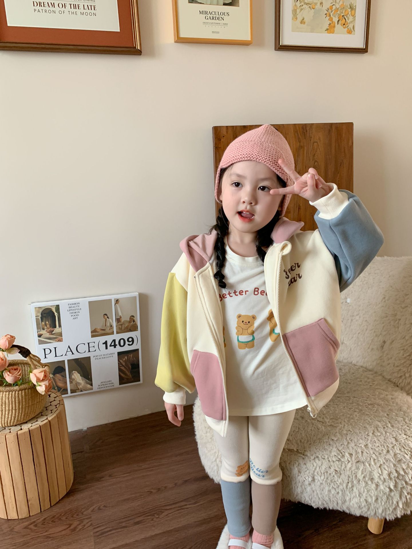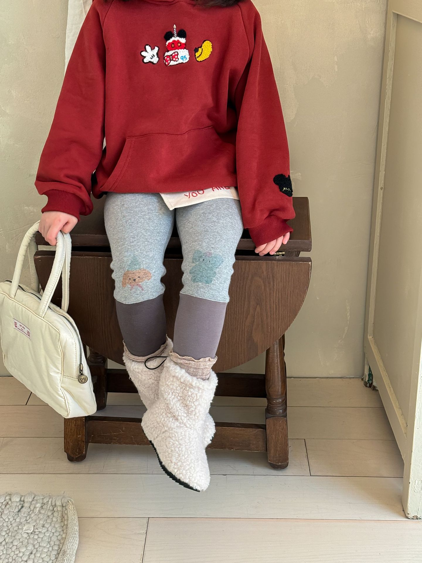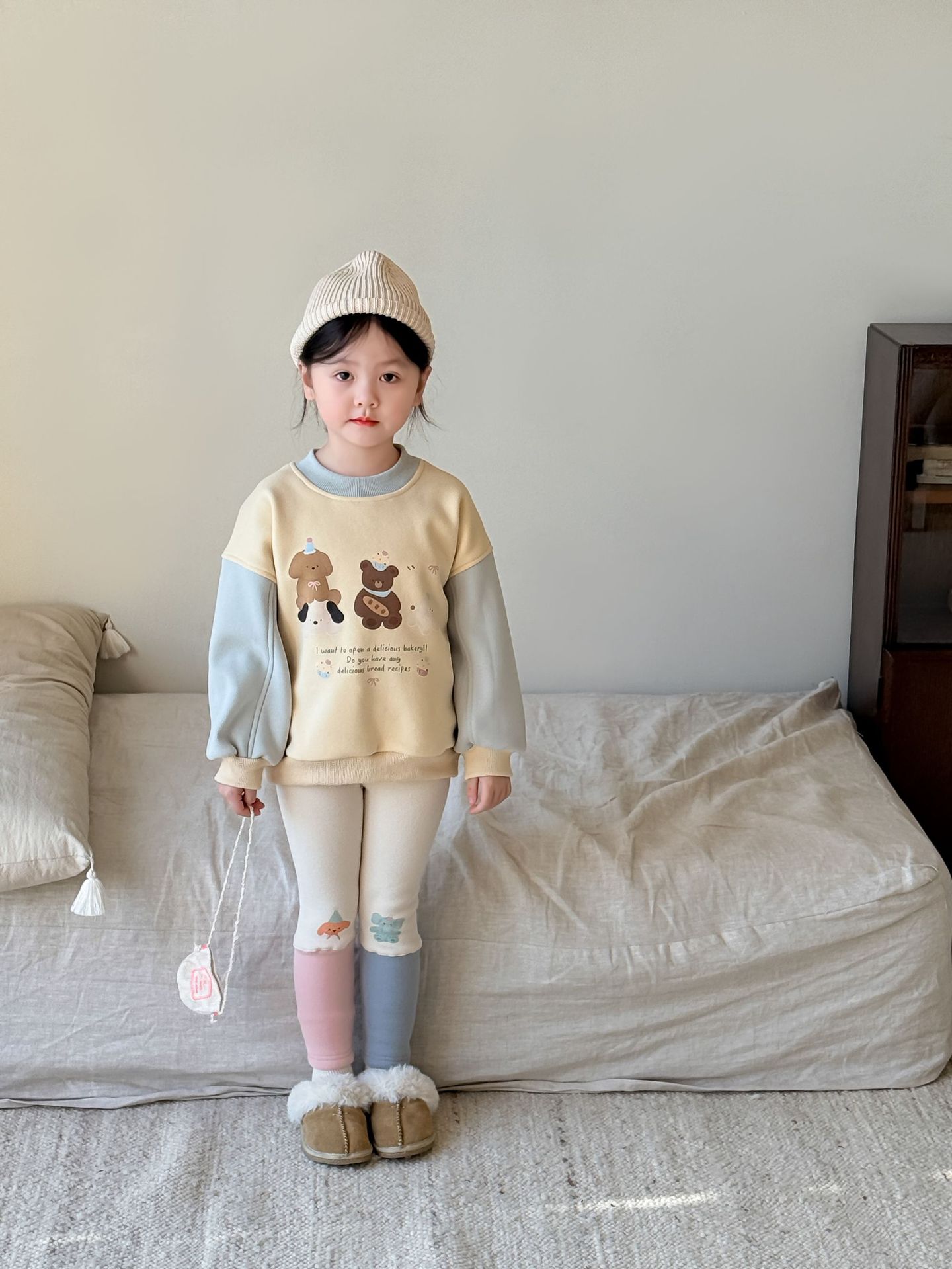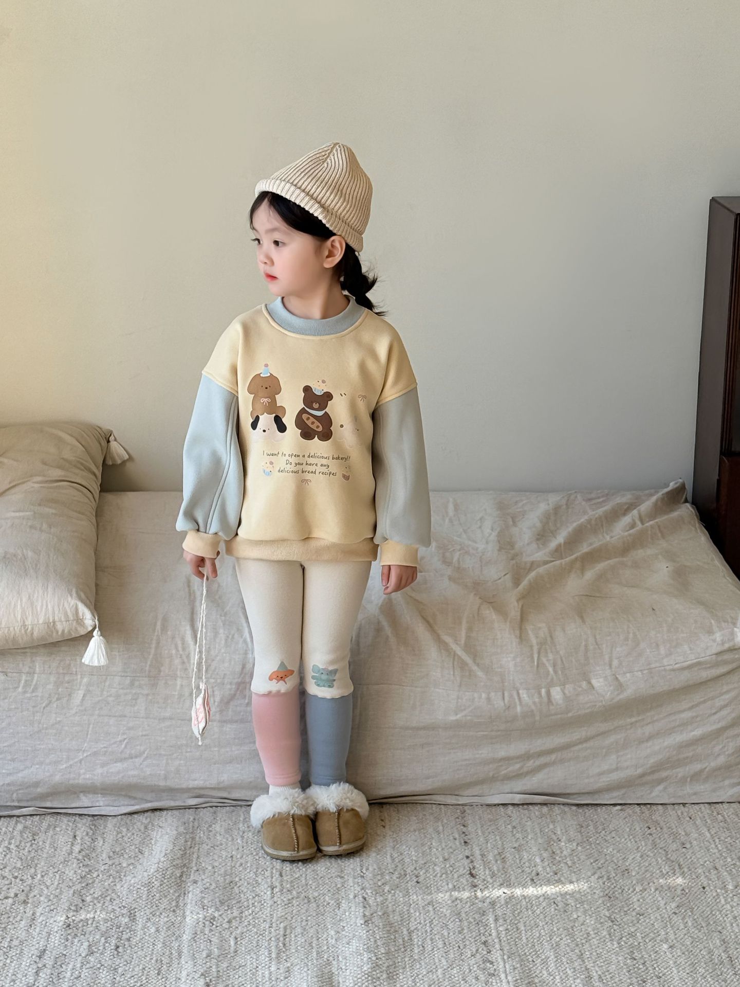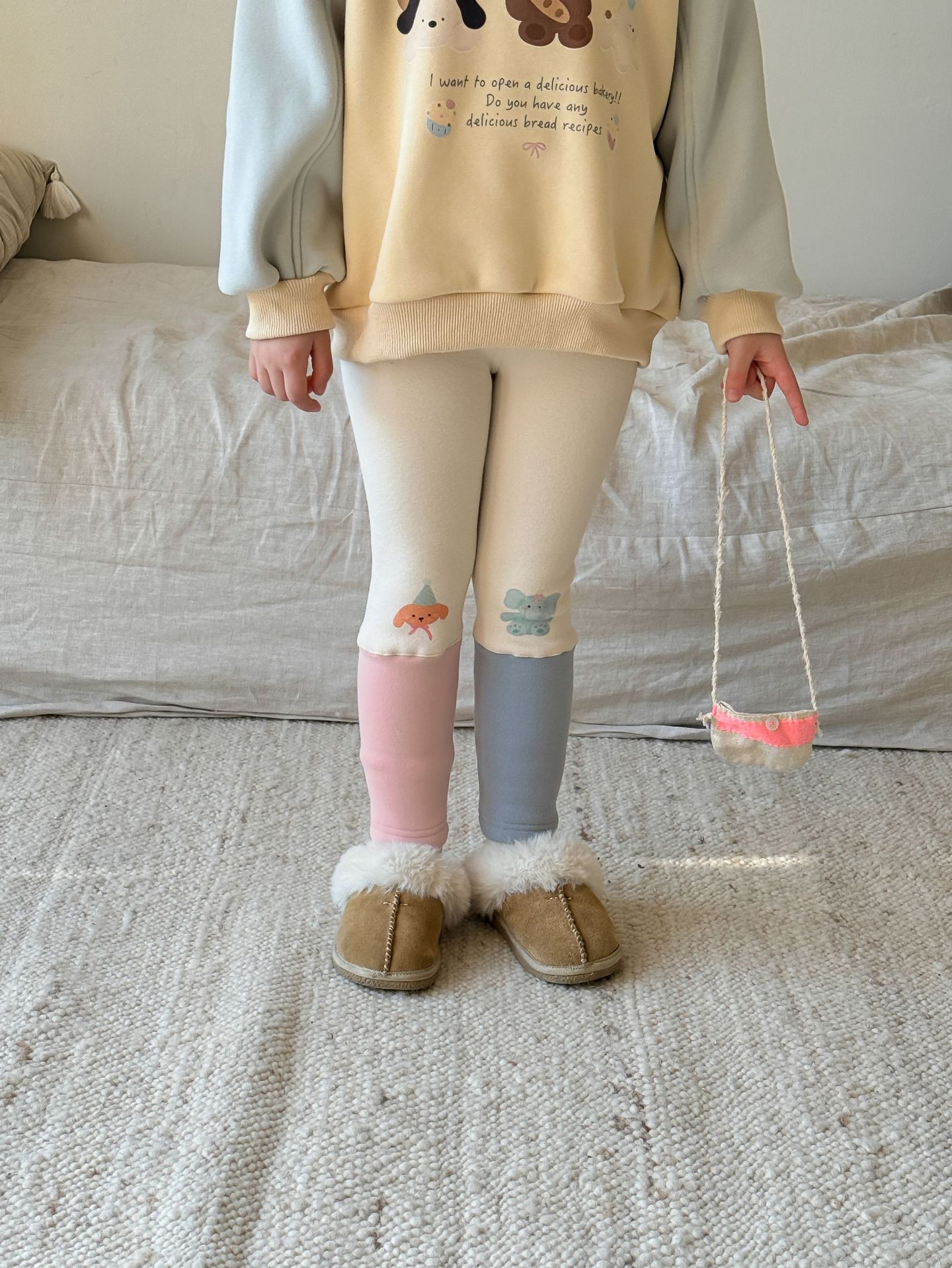 버우드 아동복 소녀 기모 레깅스 2024 겨울 새 어린이 한국 만화 바지 아기 소녀 바지스토어 가기