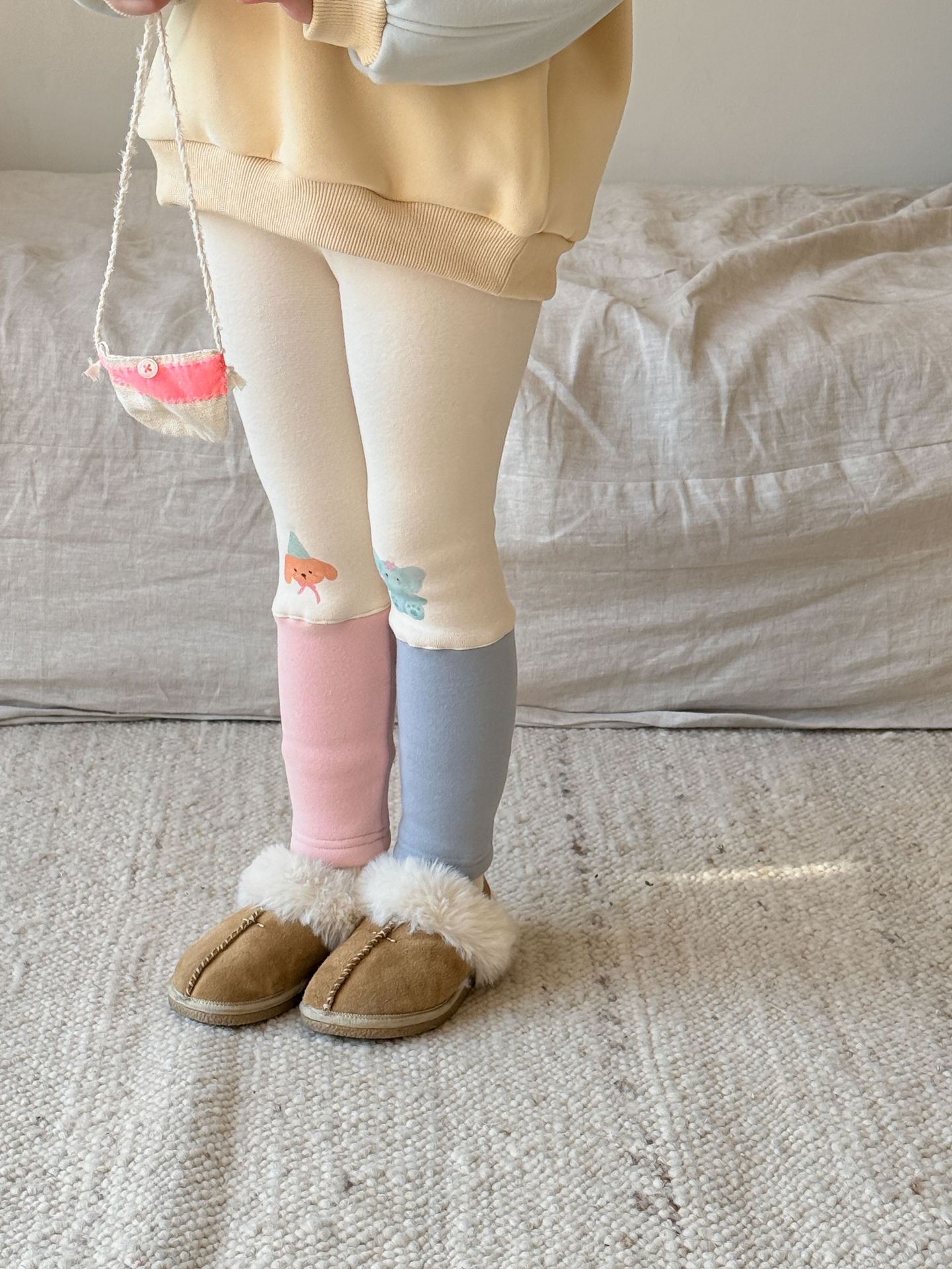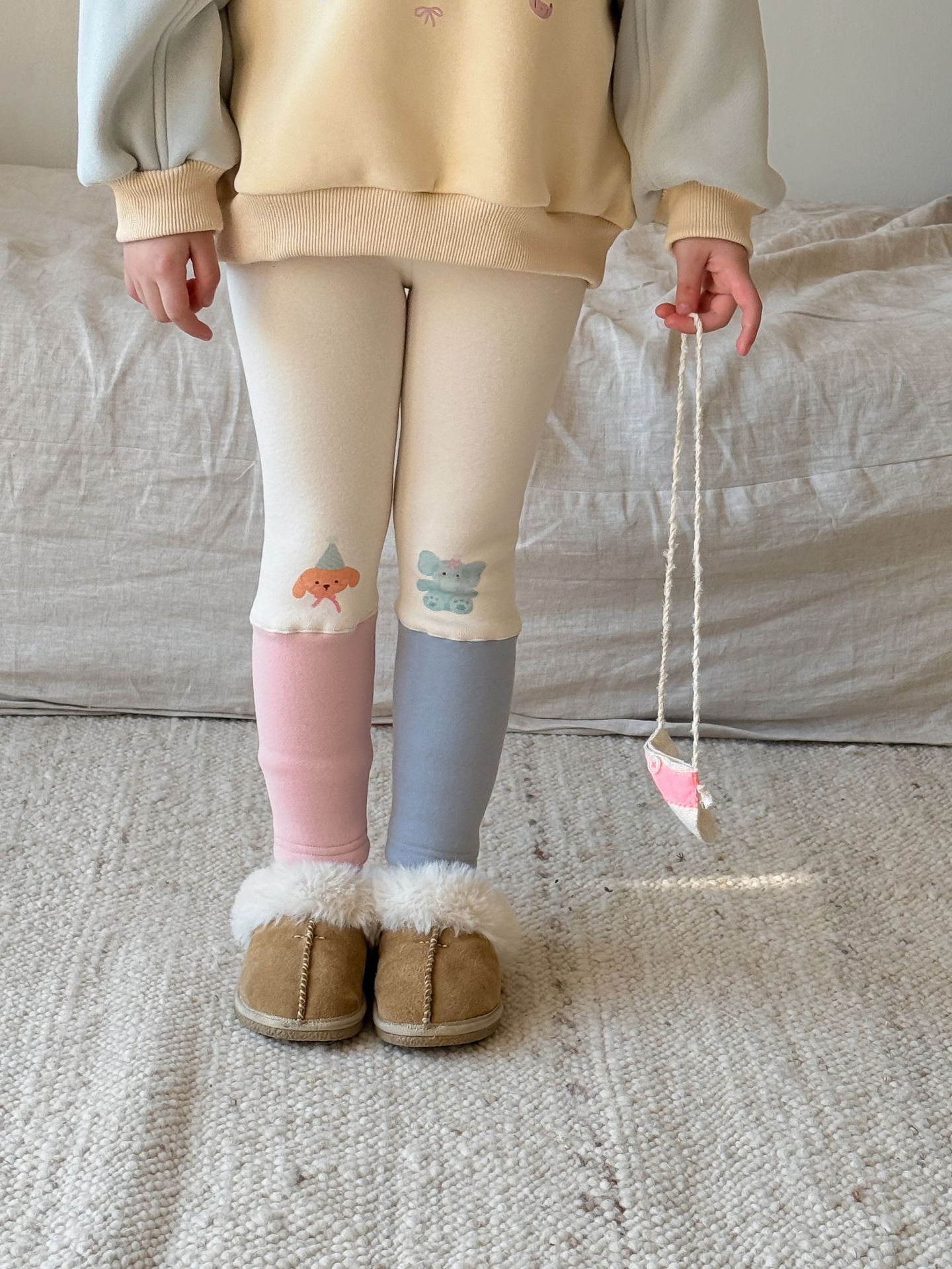 버우드 아동복 소녀 기모 레깅스 2024 겨울 새 어린이 한국 만화 바지 아기 소녀 바지