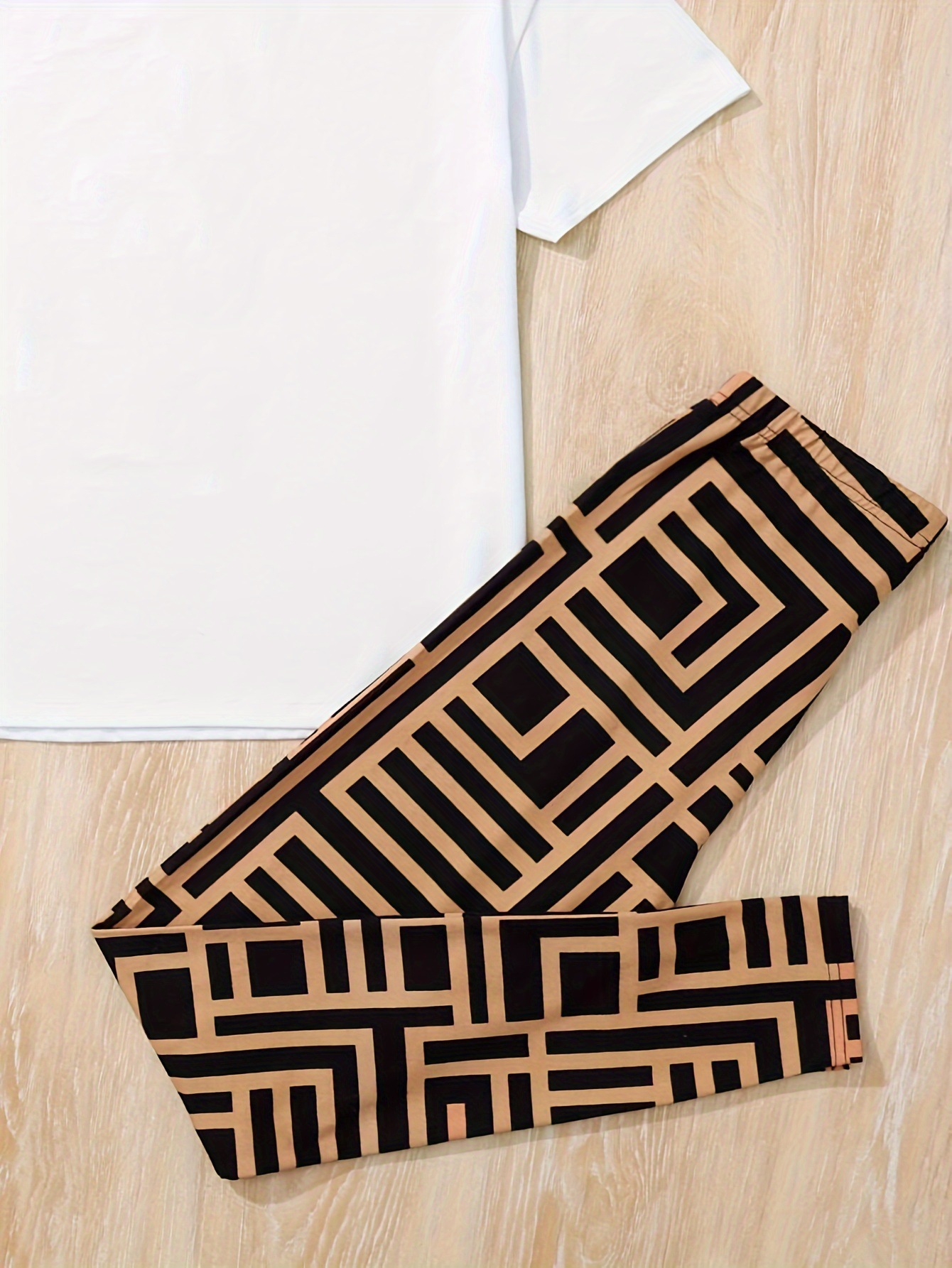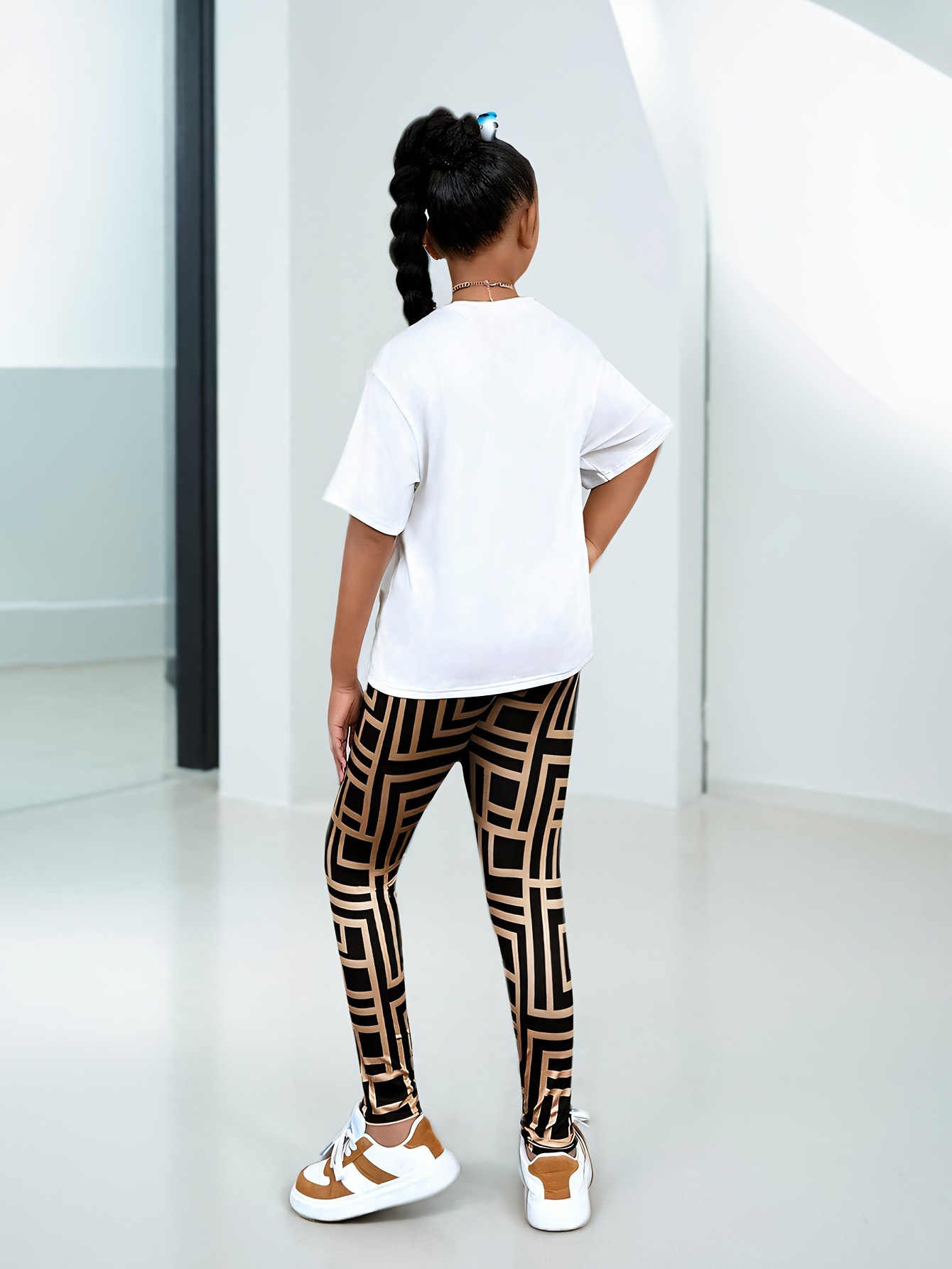 국경 간 대외 무역 INS 소녀 여름 세트 승무원 어깨 사랑 편지 인쇄 티셔츠 레깅스 캐주얼 세트