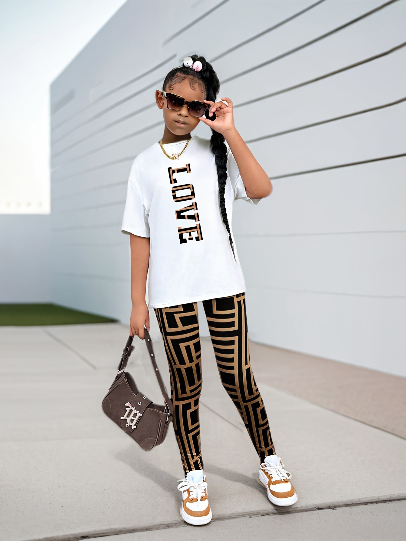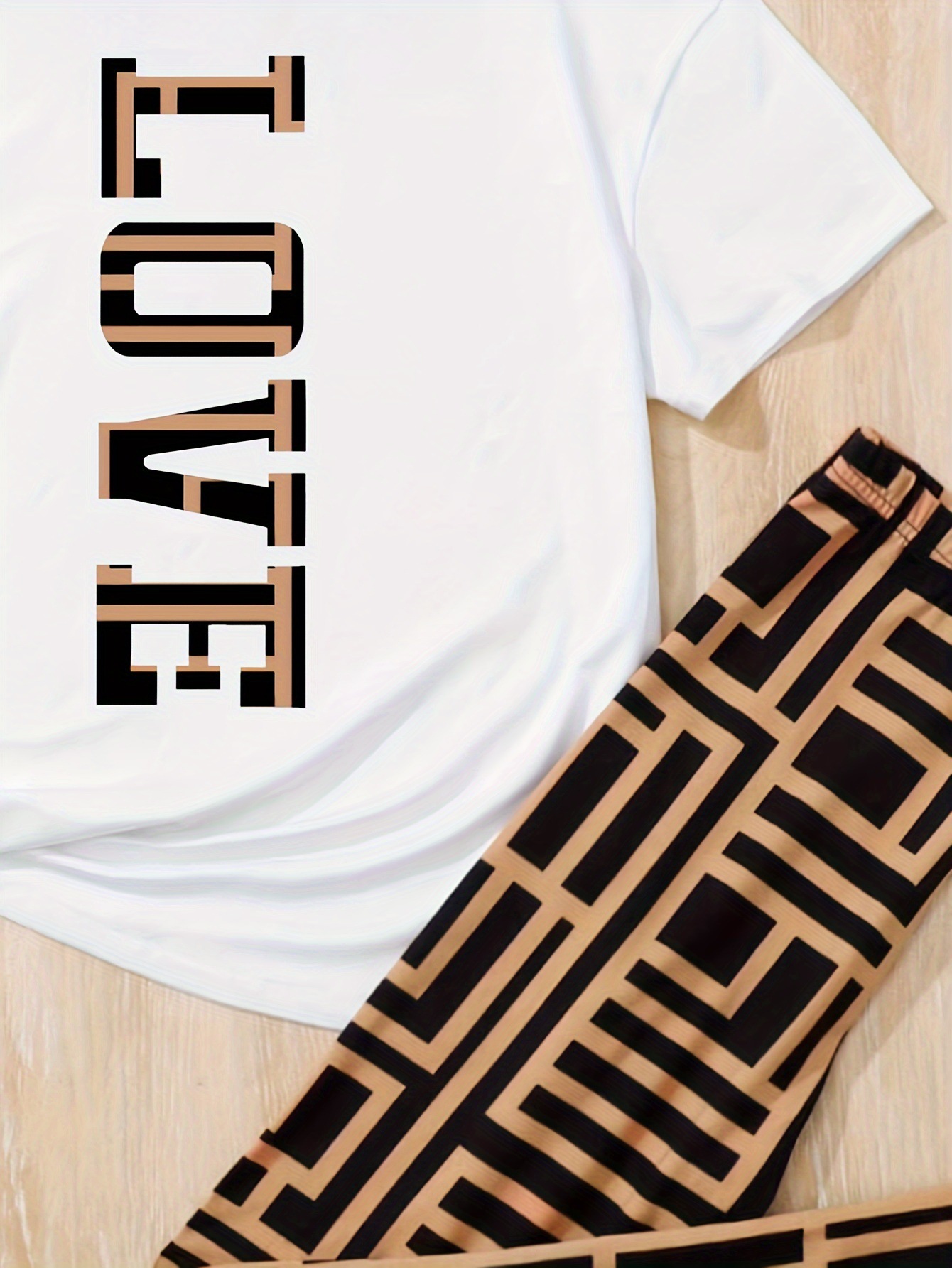 국경 간 대외 무역 INS 소녀 여름 세트 승무원 어깨 사랑 편지 인쇄 티셔츠 레깅스 캐주얼 세트스토어 가기