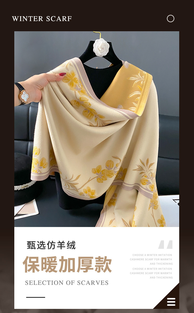 여자 스카프 겨울 2024 새로운 꽃 캐시미어 긴 에어컨이 설치된 방 목도리 양면 두꺼운 따뜻한스토어 가기