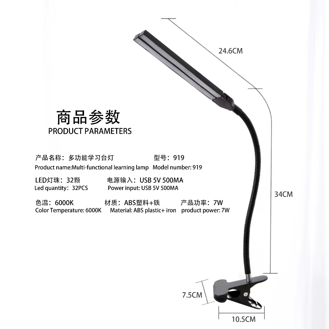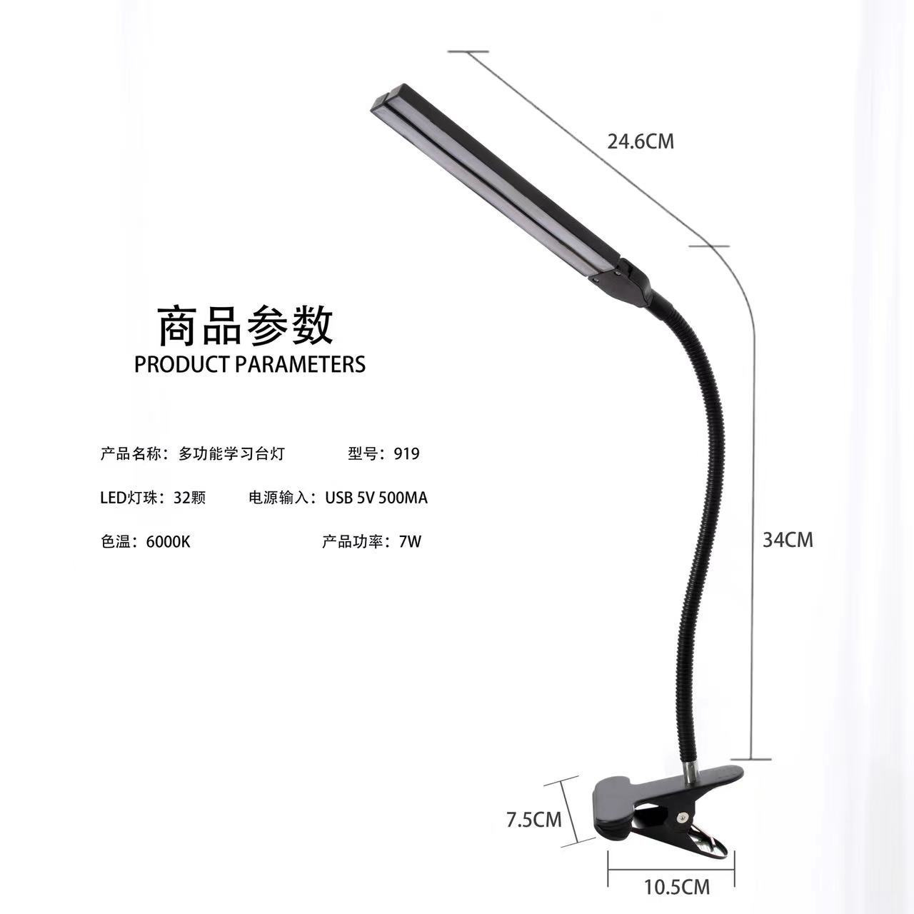 • 클립 양방향 USB 책상 램프 검정색(색상 상자에 포장)