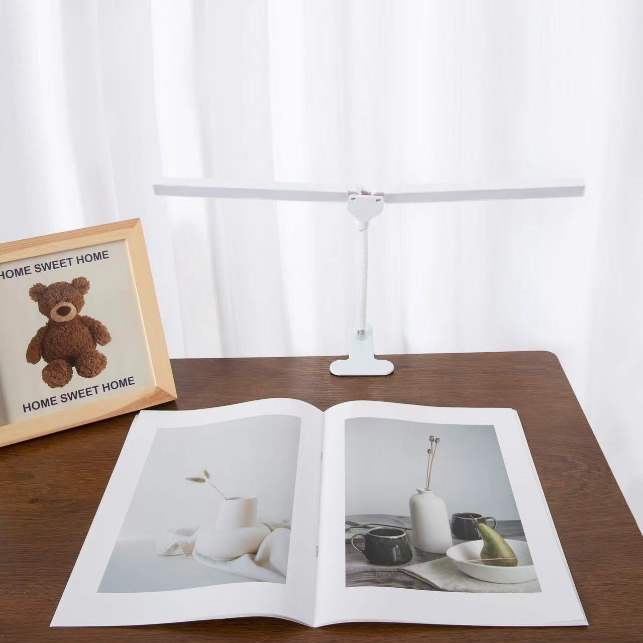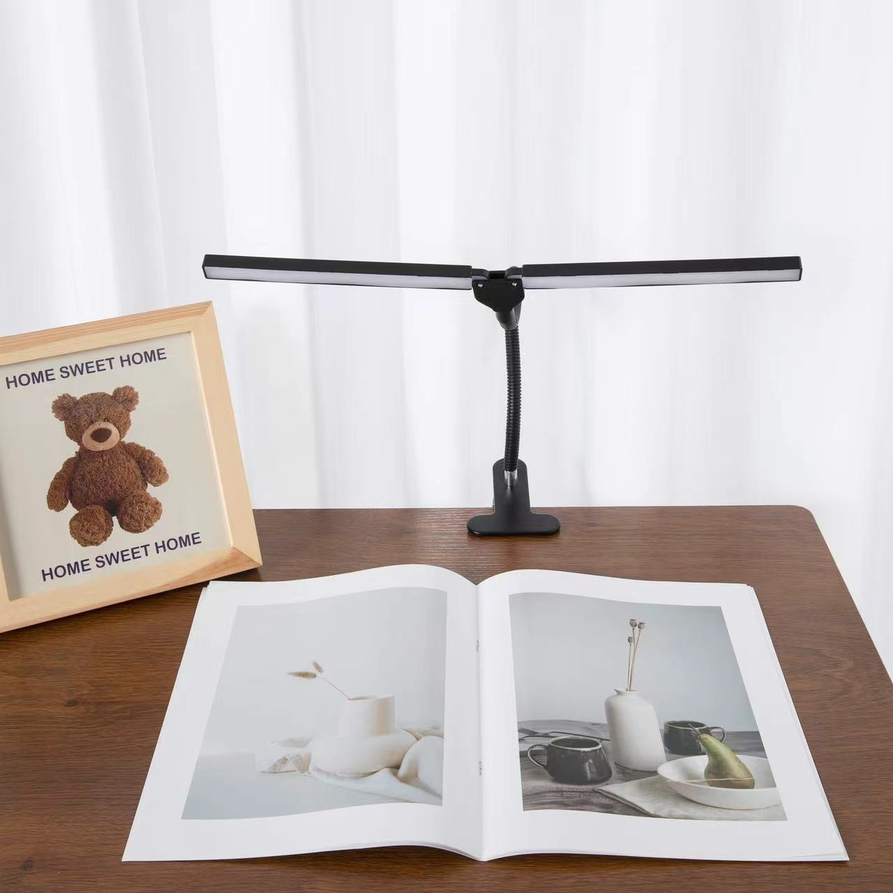 새로운 눈 보호 디밍 클립 더블 헤드 램프 다기능 학습 테이블 램프 침대 옆 독서 테이블 램프 접이식 조명 테이블 램프