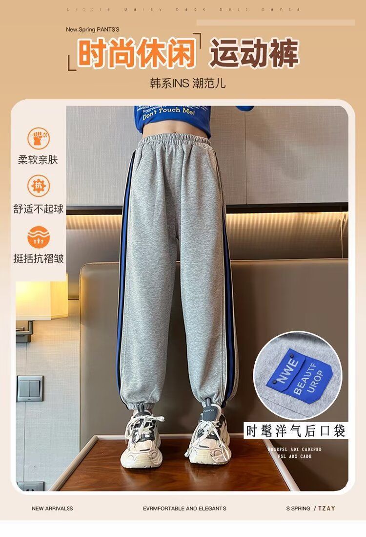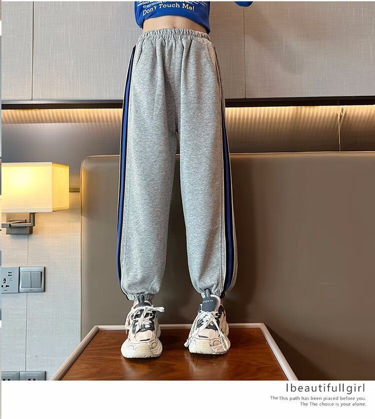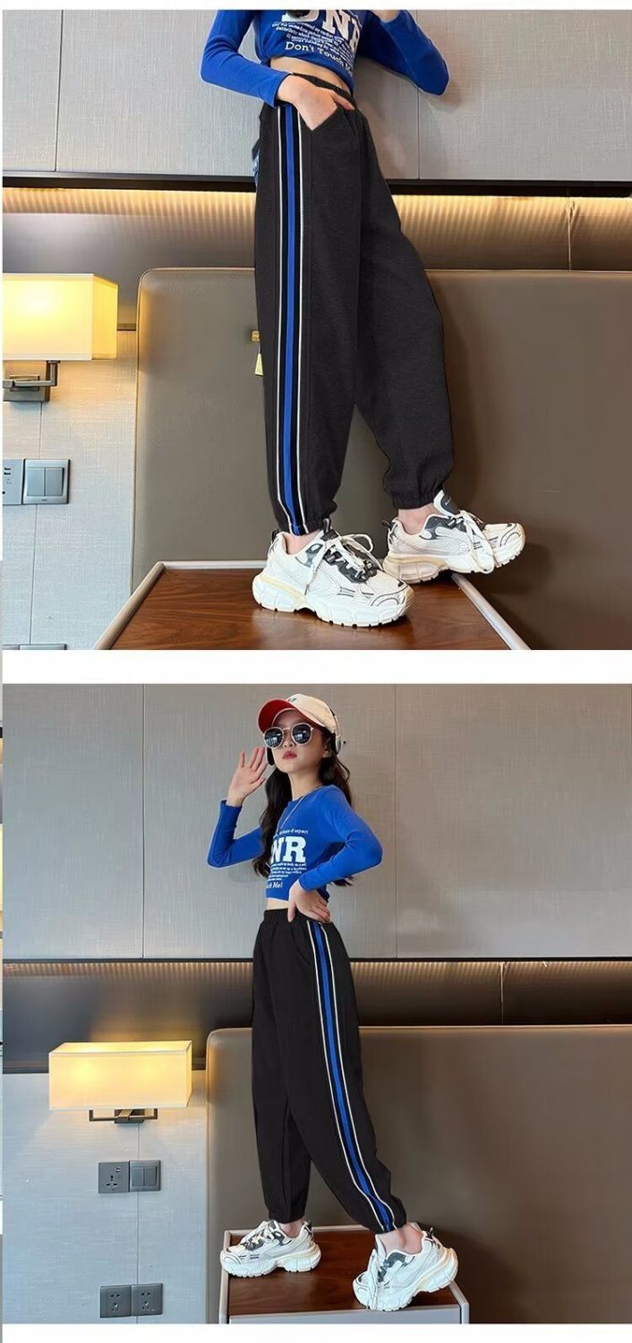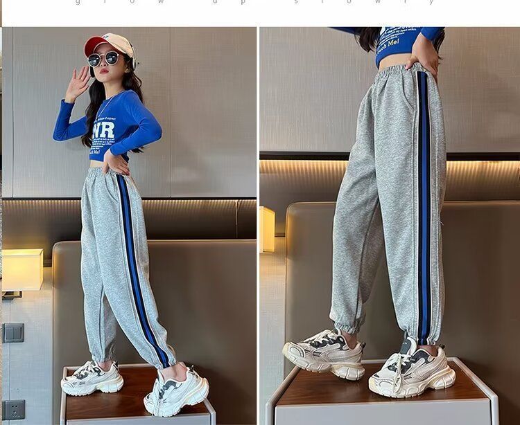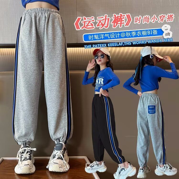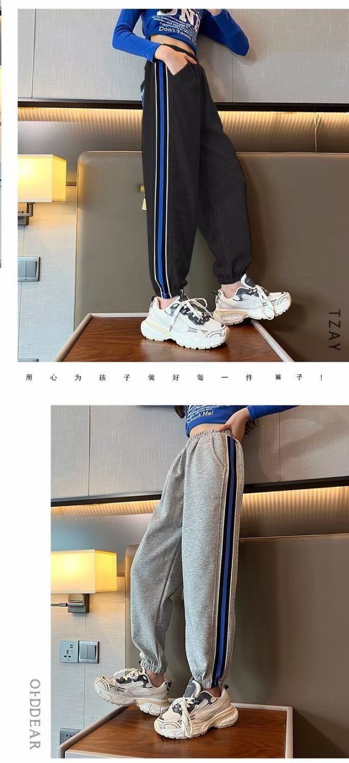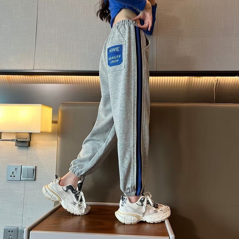 소녀의 거리 바지 봄 2024 새로운 어린이 봄과 가을 스포츠 운동복 소녀 캐주얼 느슨한 유행 바지스토어 가기