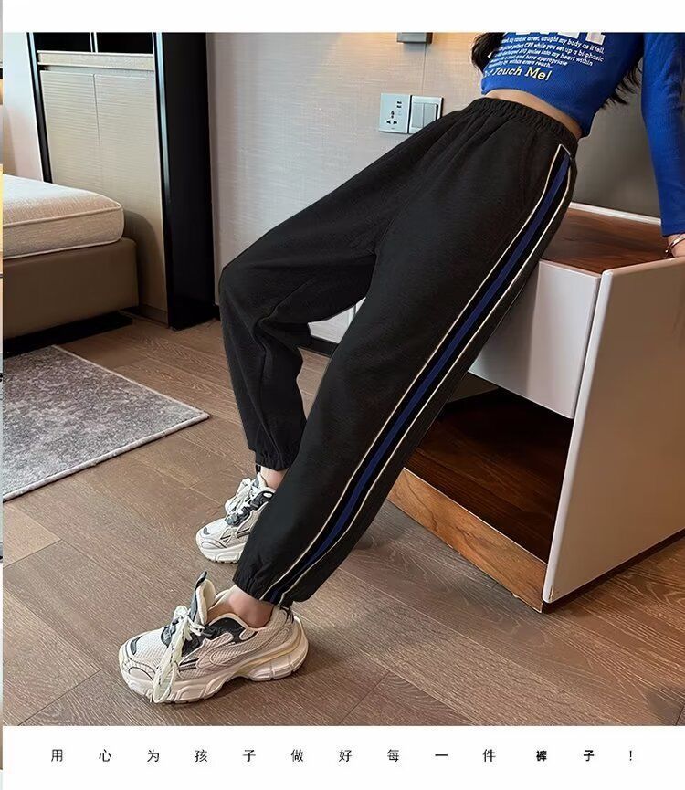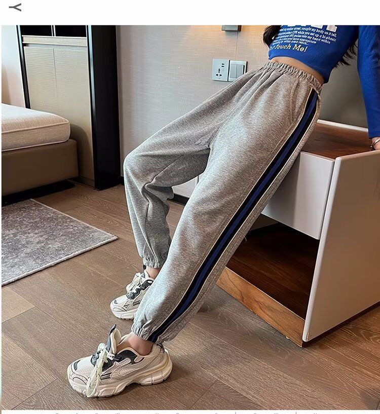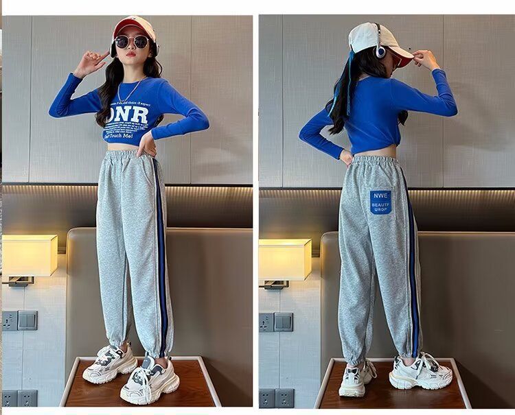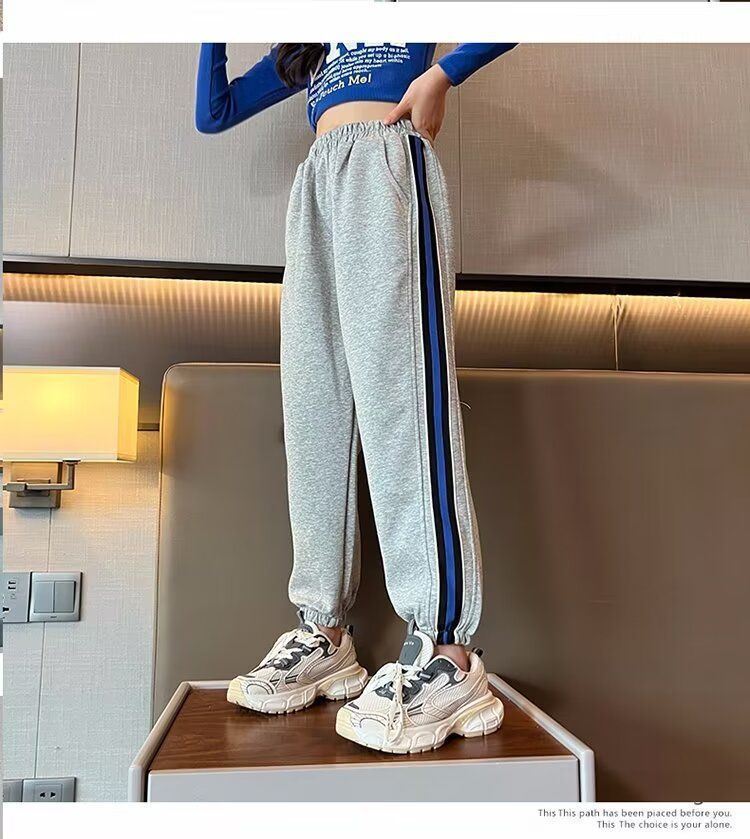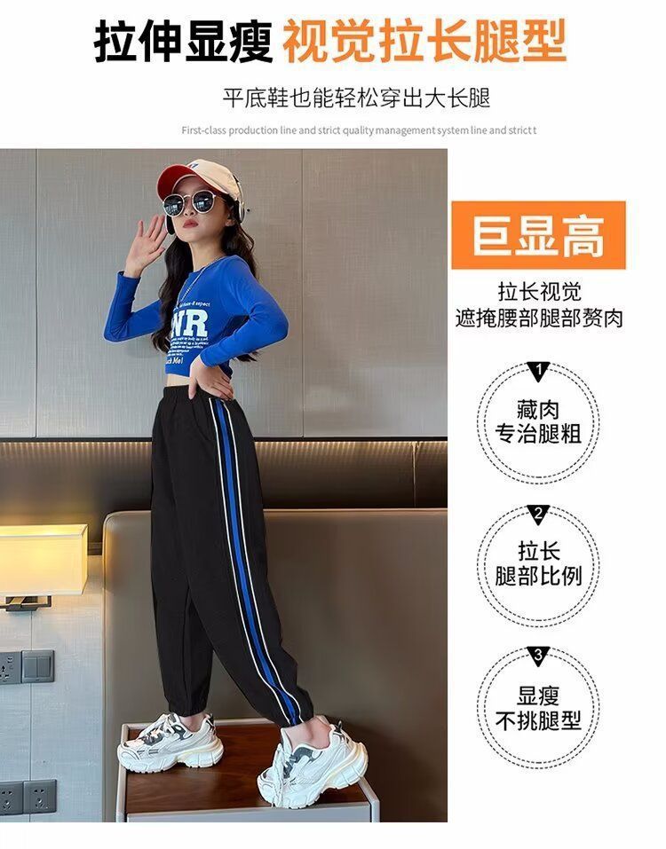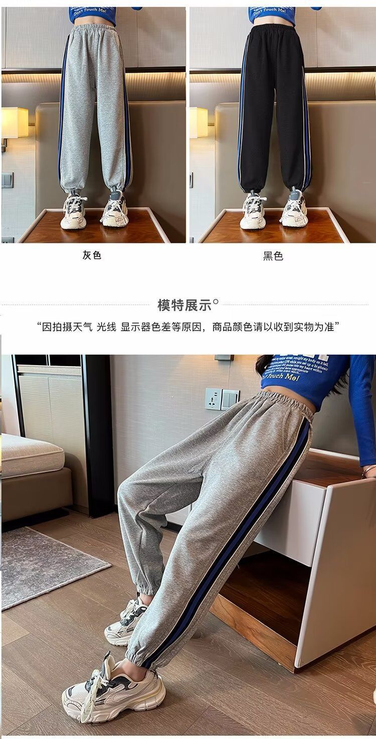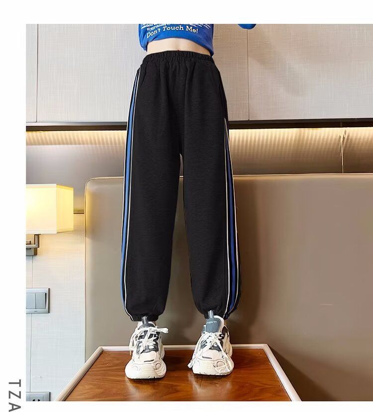 소녀의 거리 바지 봄 2024 새로운 어린이 봄과 가을 스포츠 운동복 소녀 캐주얼 느슨한 유행 바지스토어 가기