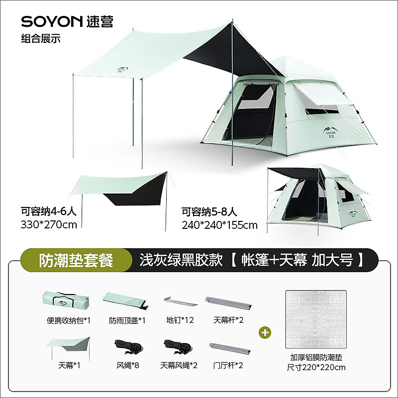 • [휴대용 테이블과 의자 패키지] 자외선 차단 비닐 텐트 플러스 사이즈 5~8인용