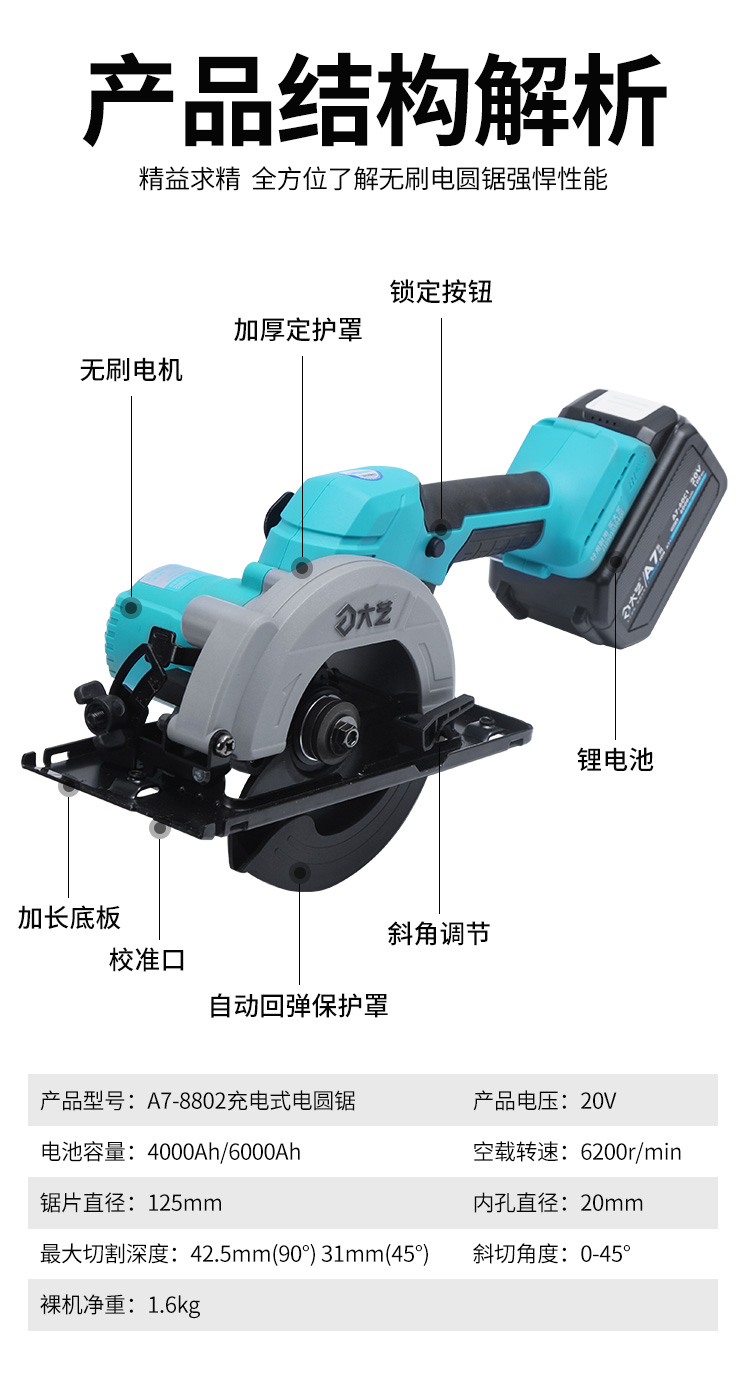 리튬 전기 톱 A7 리튬 전기 톱 핸드 푸시 톱 목공 전기 원형 톱 원형