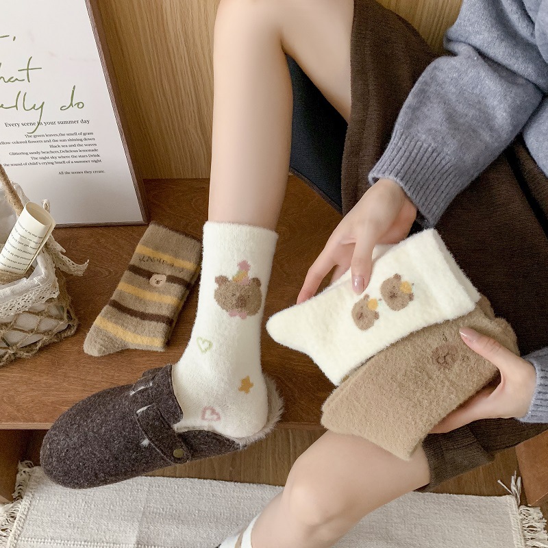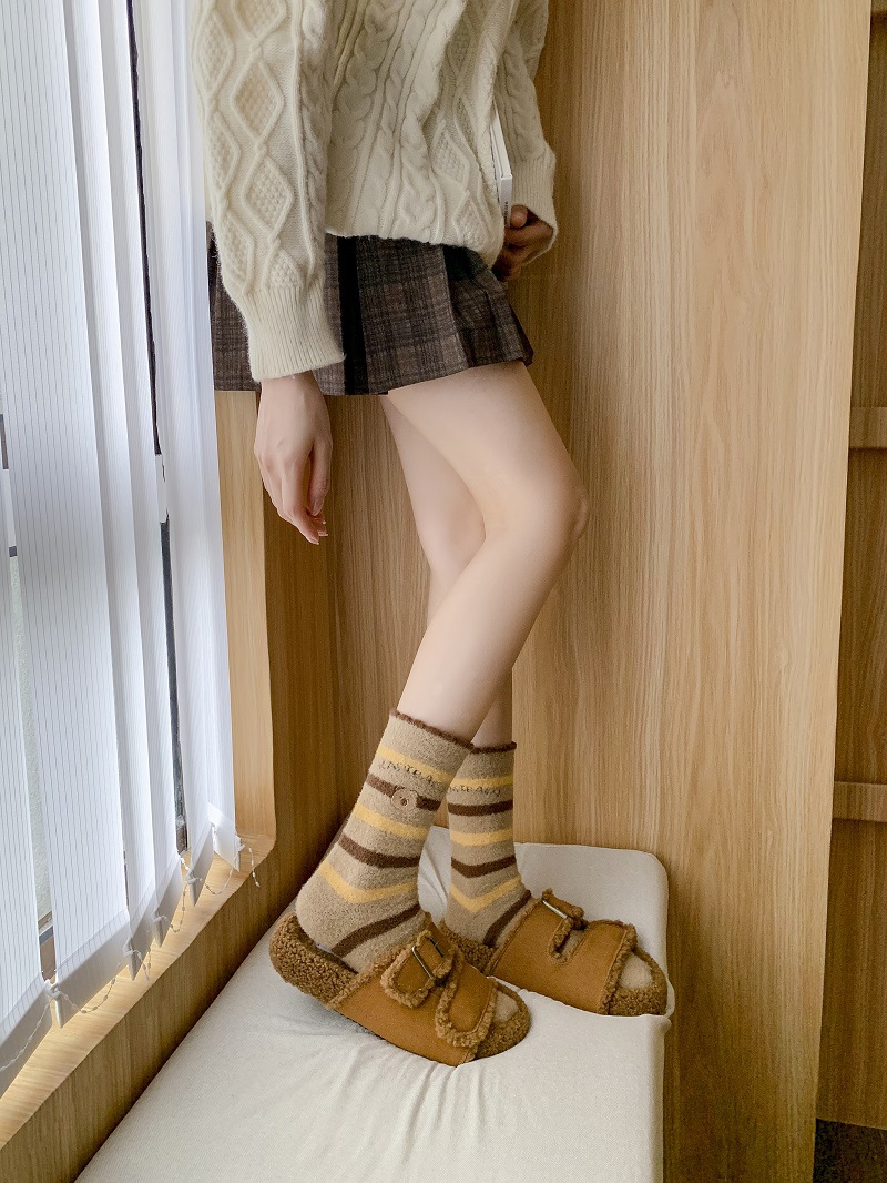 귀여운 흰색 호주 벨벳 양말 어린이 가을과 겨울 중간 튜브 양말 두꺼운 따뜻한 겨울 홈 수면 느슨한 바닥 양말스토어 가기