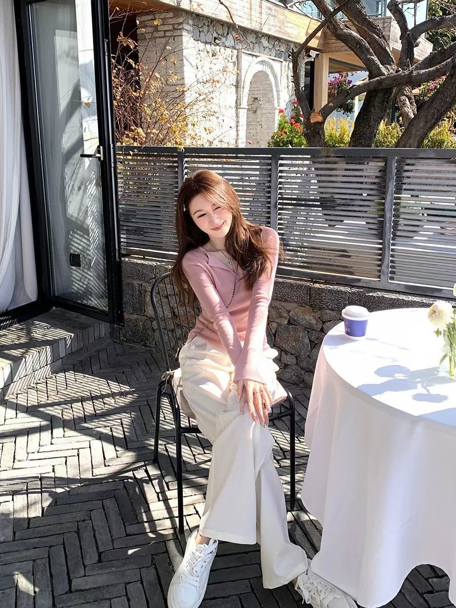Kasler 가을과 겨울 부드러운 왁스 종이 시대를 줄이는 솔리드 컬러 V 넥 슬림 핏 최고 피부 친화적 인 니트베이스 셔츠