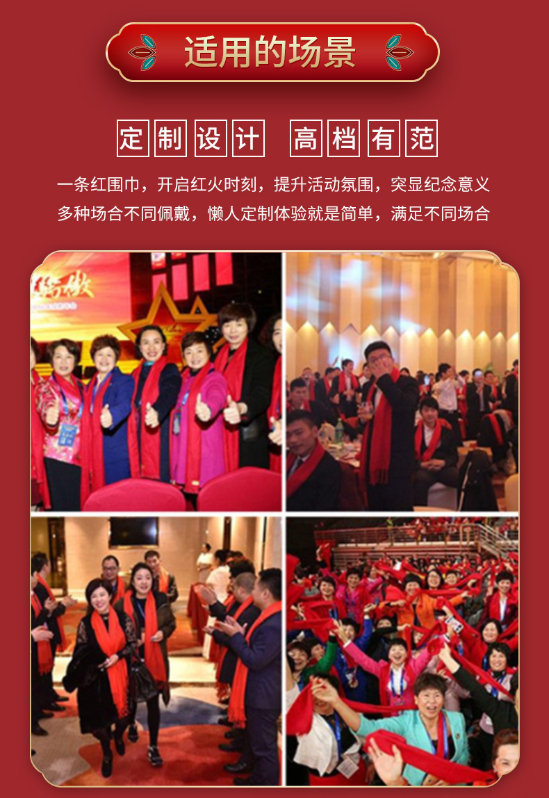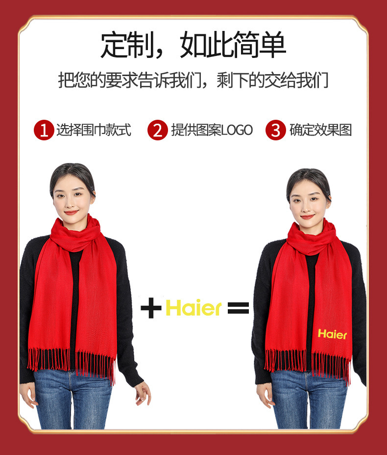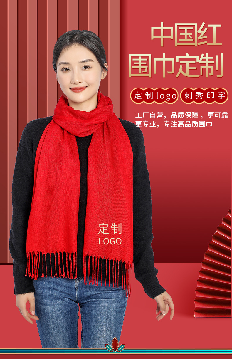 연례 회의 레드 스카프 자수 중국 레드 파티 레드 스카프 도매 오프닝 레드 스카프 선물 인쇄 로고
