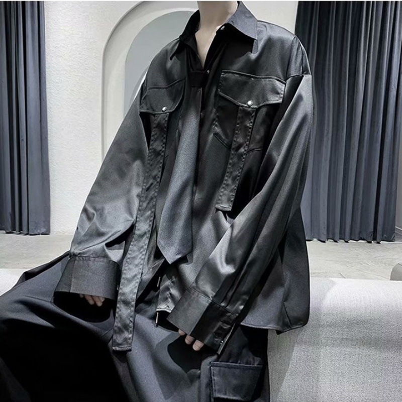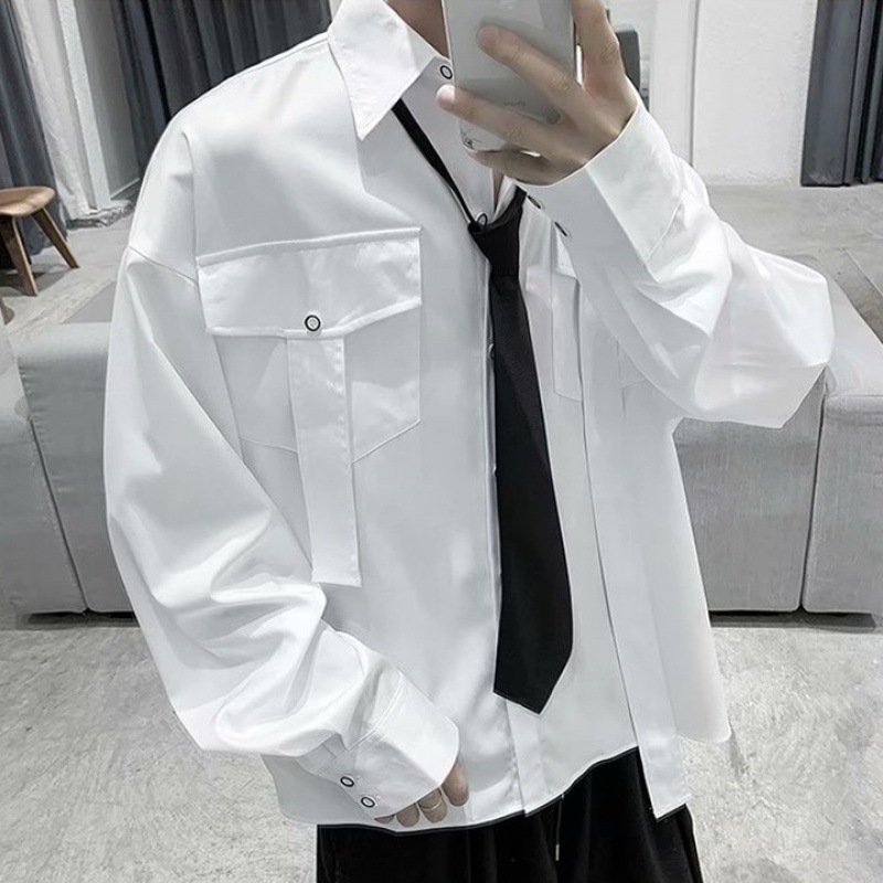 단색 흰색 셔츠 남자 긴팔 한국 스타일 유행 느슨한 일본 스타일 대학 스타일 유니폼 BF 커플 캐주얼 셔츠스토어 가기