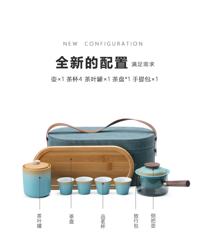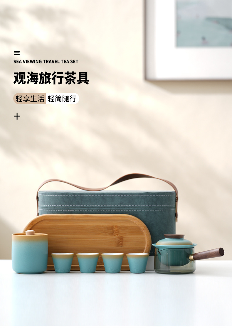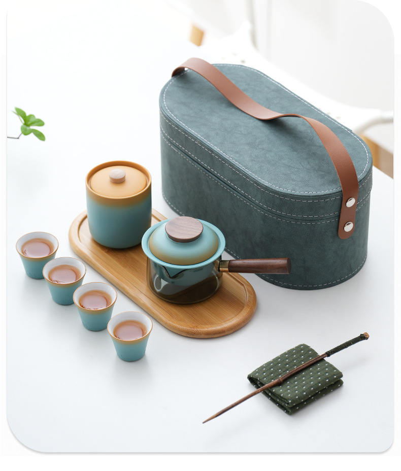 • Guanghai 사이드 핸들 주전자 여행용 차 세트 (그라데이션 블루) - 핸드백