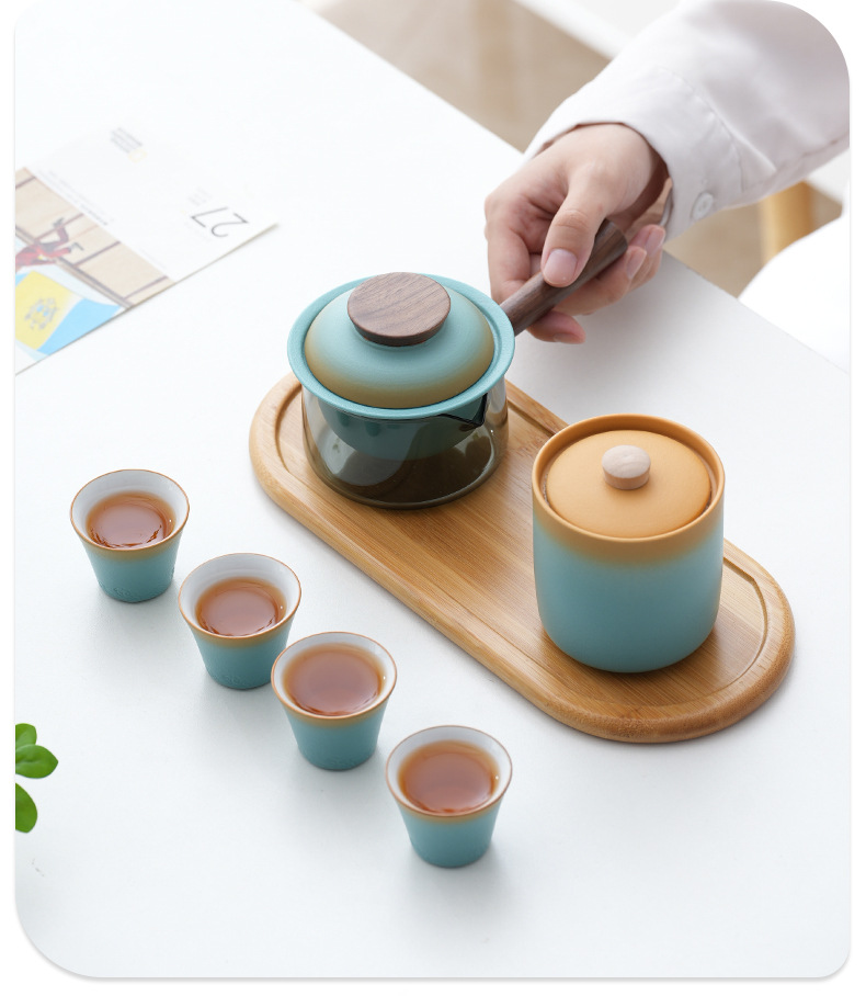 휴대용 여행 차 세트 세트 핸드백 가정용 세트 쿵푸 차 세트 1 포트 4 컵 선물 로고스토어 가기