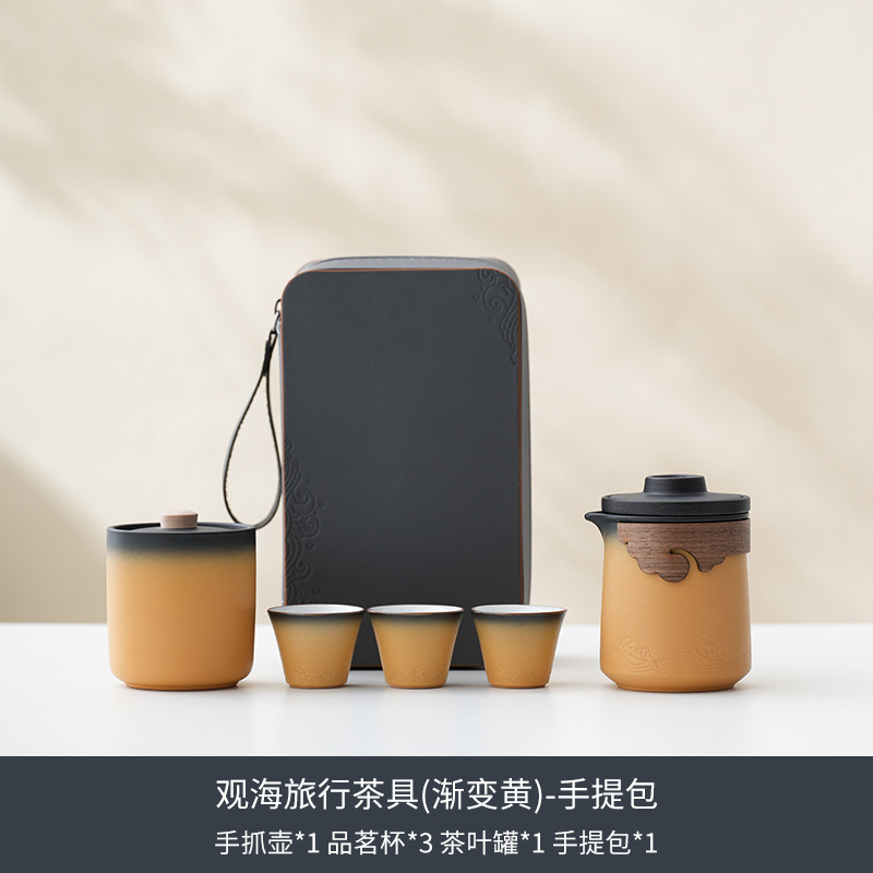 • Guanshai 손 냄비 여행 차 세트 (그라데이션 옐로우) - 핸드백