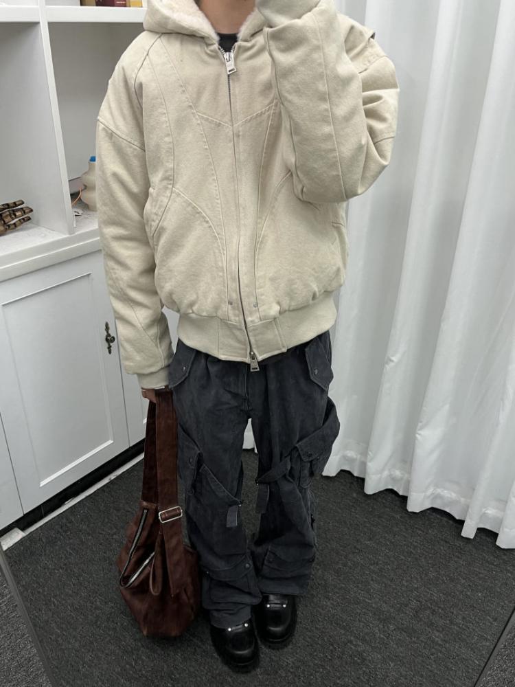 클린 핏 마운틴 조각 재킷 남자의 가을과 겨울 기모 두꺼운 코튼 의류 미국 스타일 무거운 캔버스 후드 자켓스토어 가기