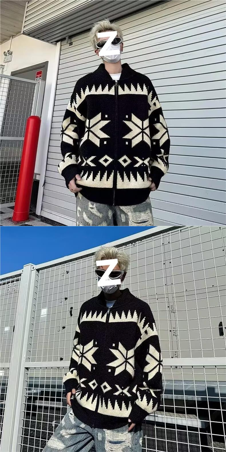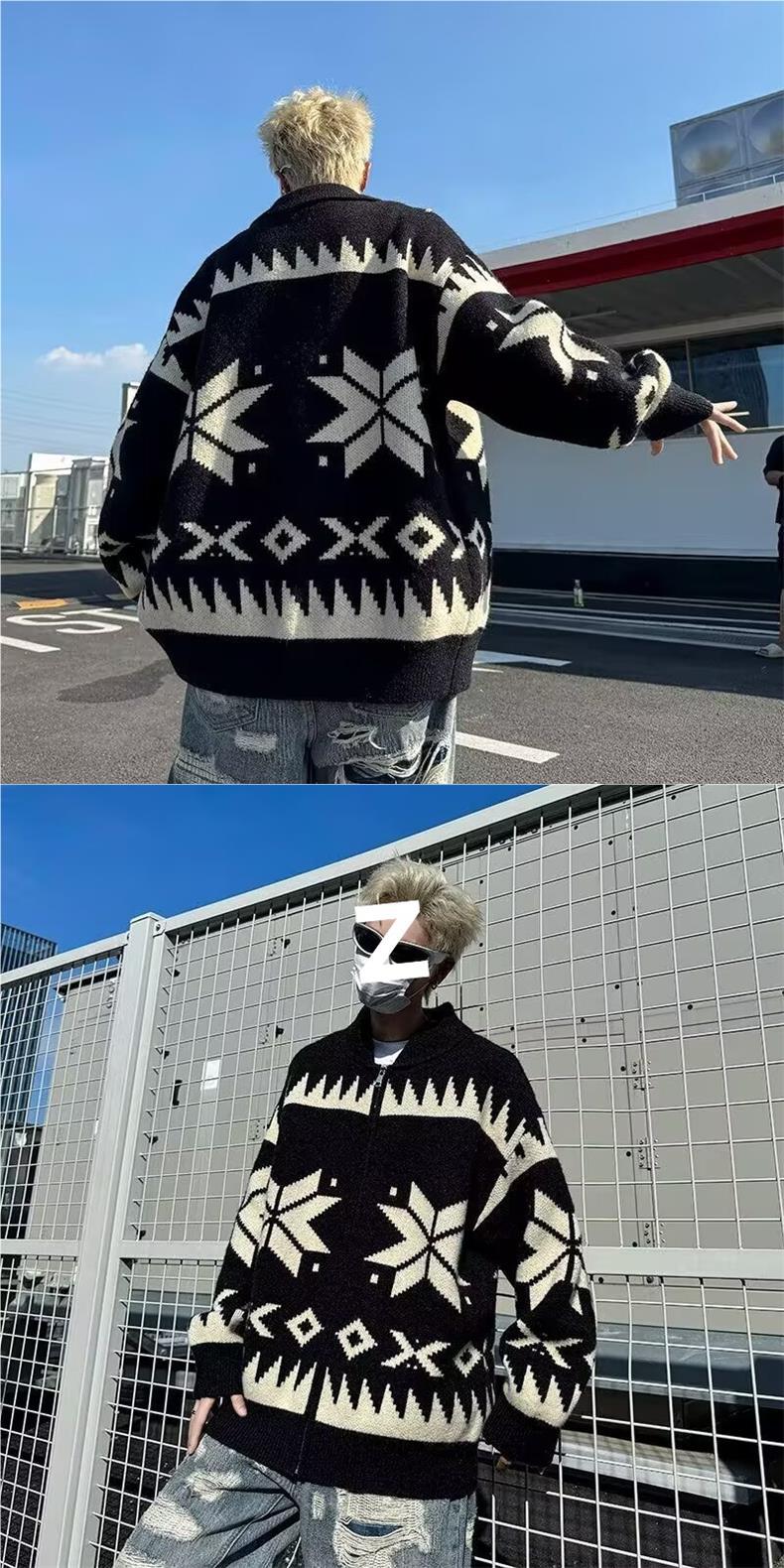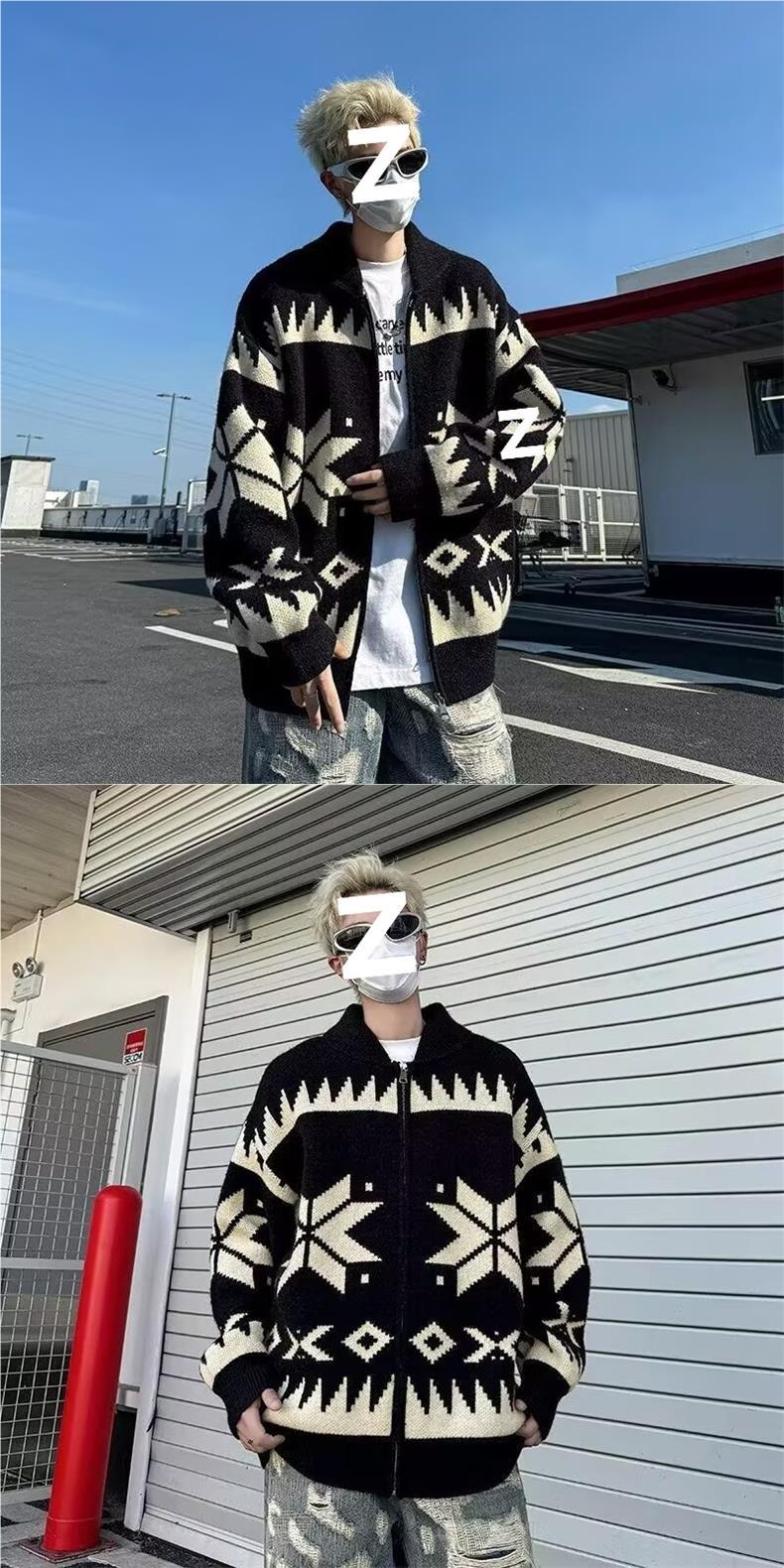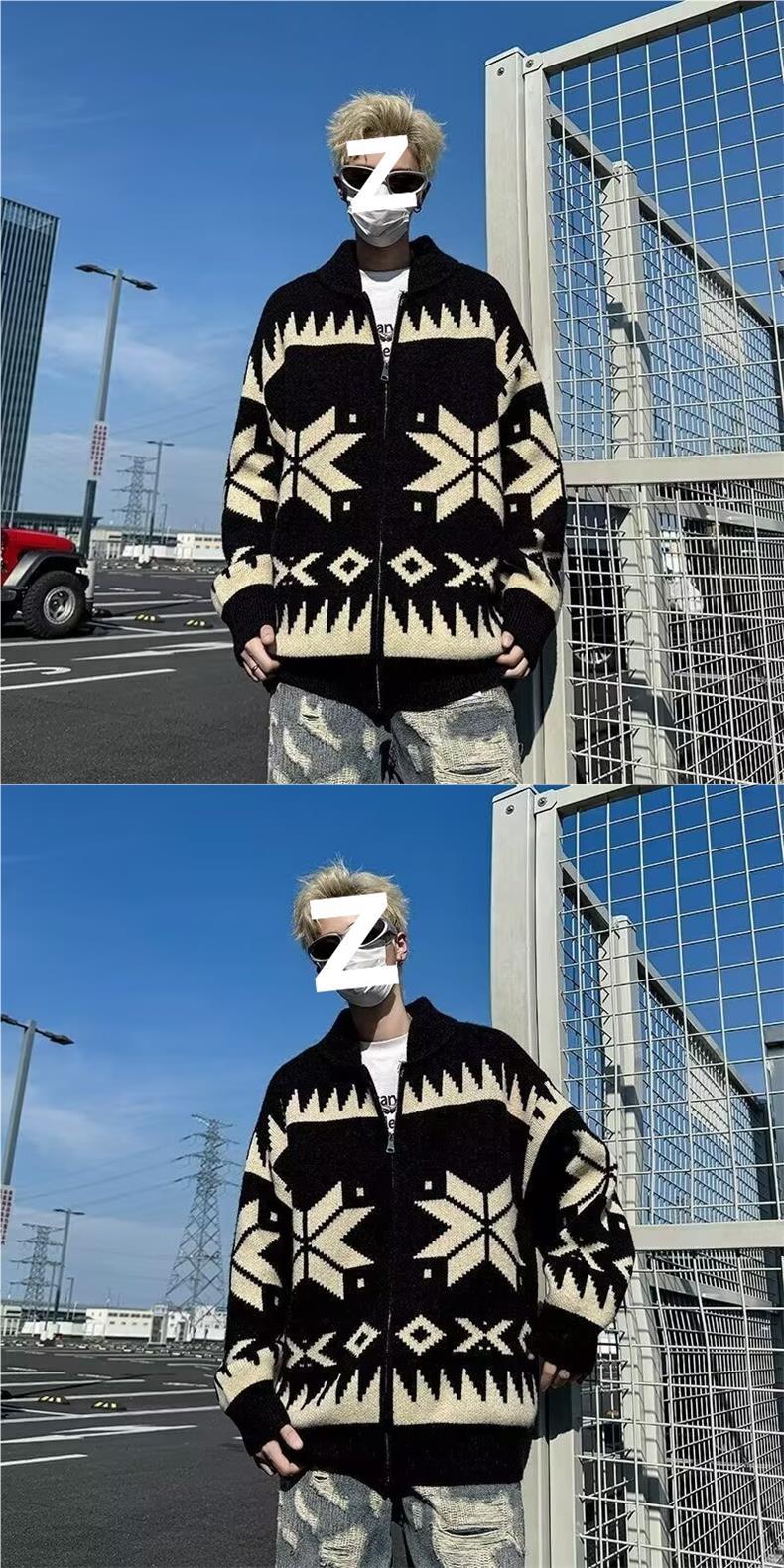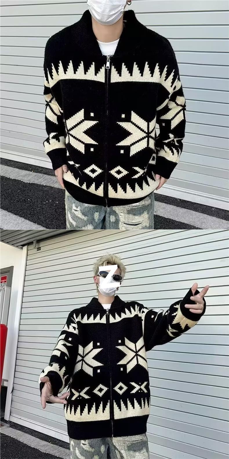 민족 스타일 옷깃 외부 착용 새로운 남성 카디건 스웨터 레트로 유행 스웨터 지퍼 느슨한 니트 따뜻한 재킷스토어 가기