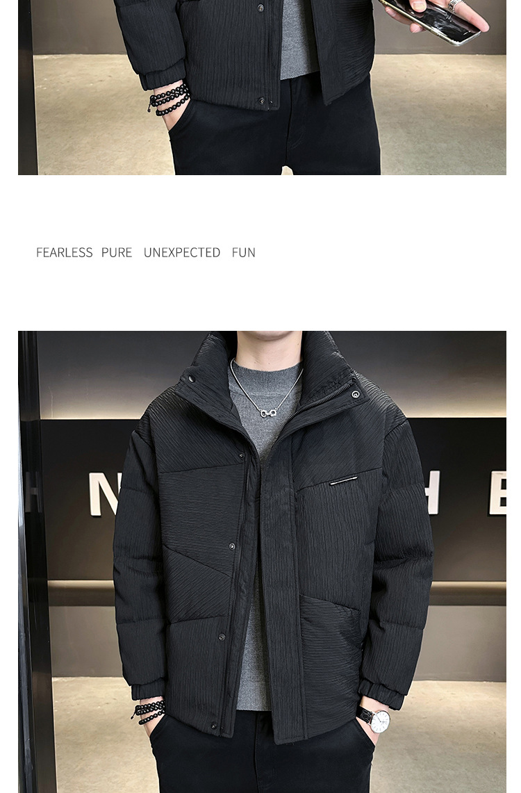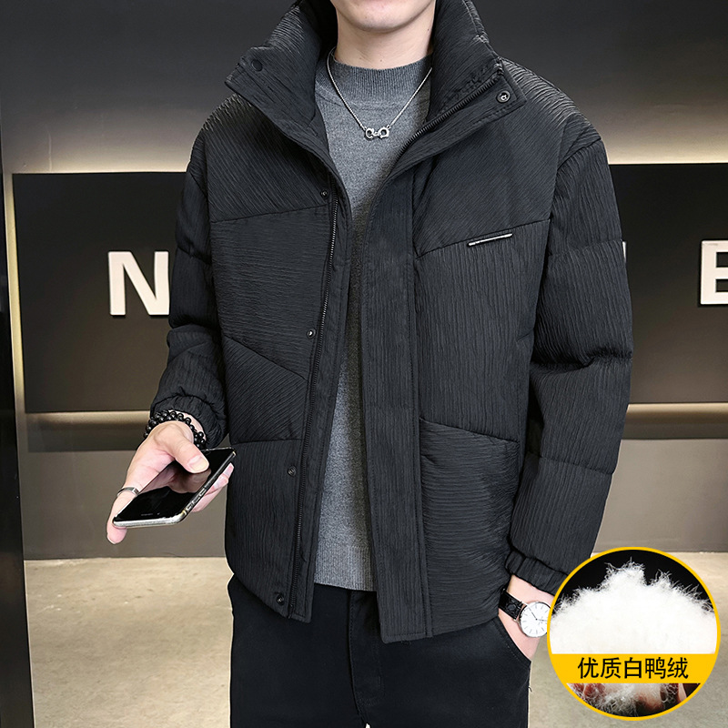 남자 겨울 다운 재킷 두꺼운 유행 브랜드 바느질 재킷 남자의 경량 오리 재킷 2024 새로운 줄무늬스토어 가기