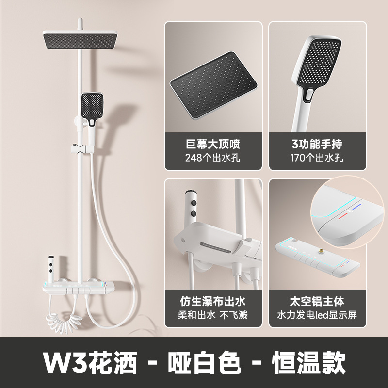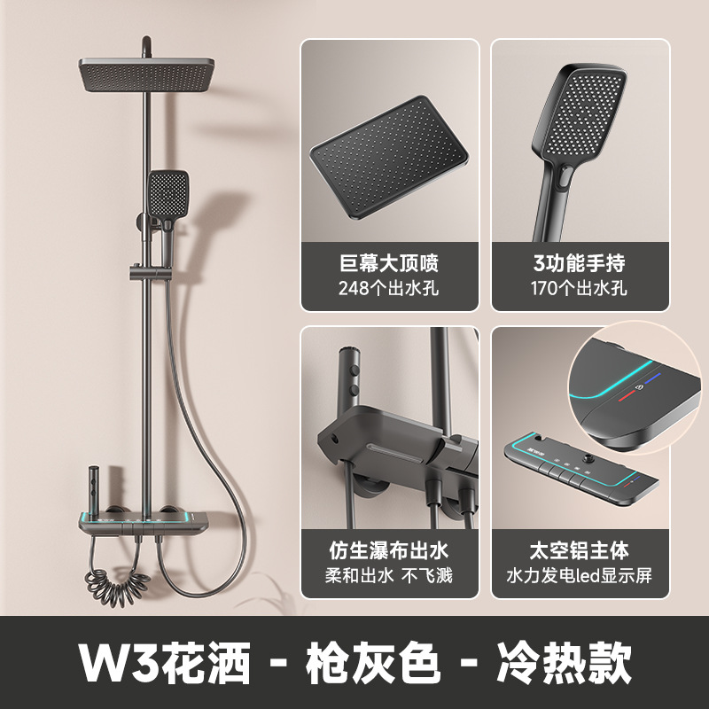 화장실 라이트 럭셔리 목욕 샤워 세트 건 그레이 디지털 디스플레이 일정한 온도 샤워 저장 대기 빛 비 샤워 홈 사용
