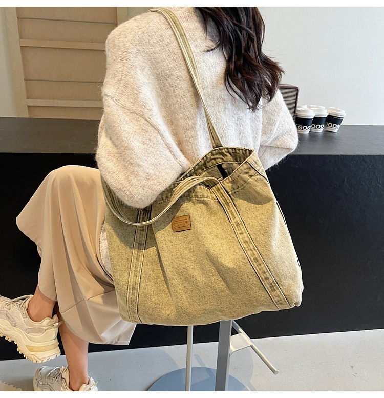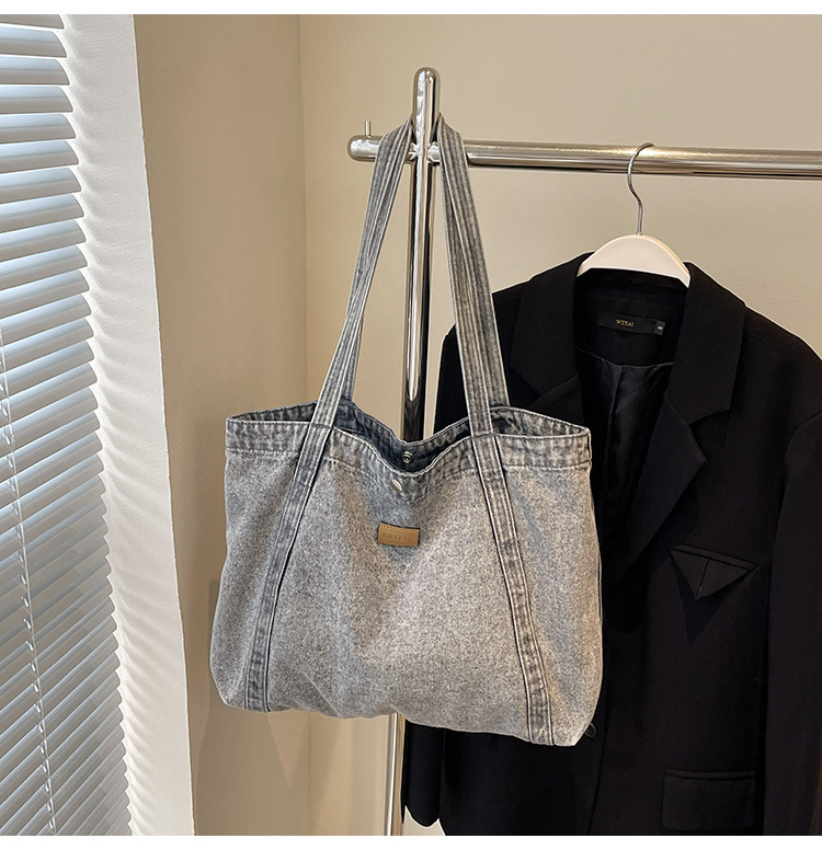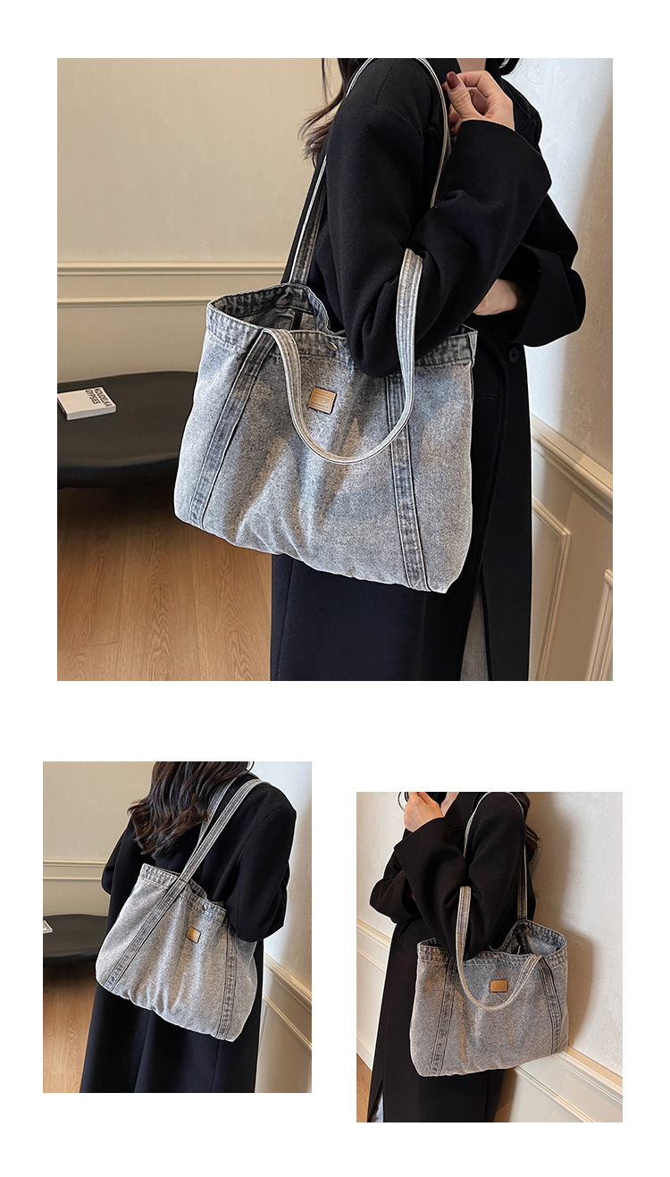 패션 간단한 캐주얼 대용량 다목적 여성용 휴대용 숄더백 2024 새로운 가을과 겨울 데님 토트 백