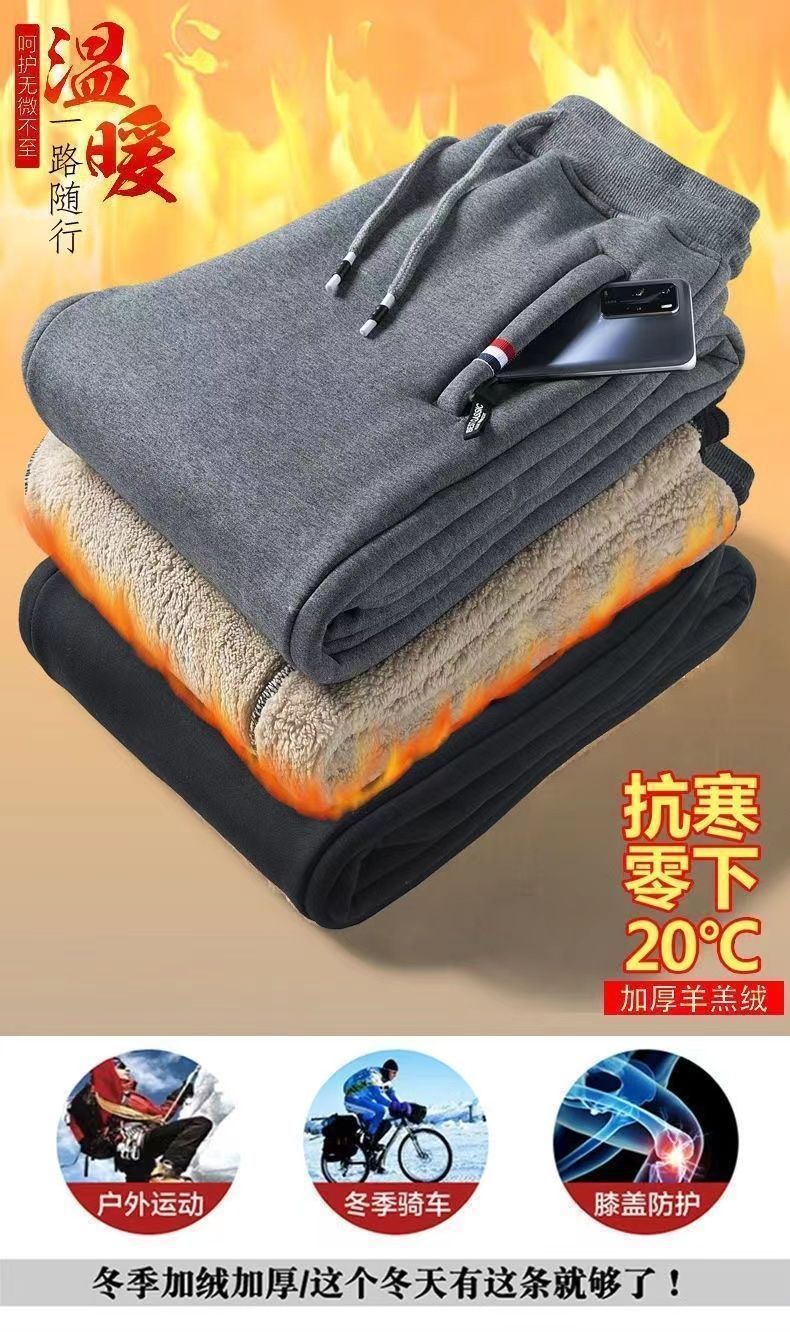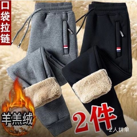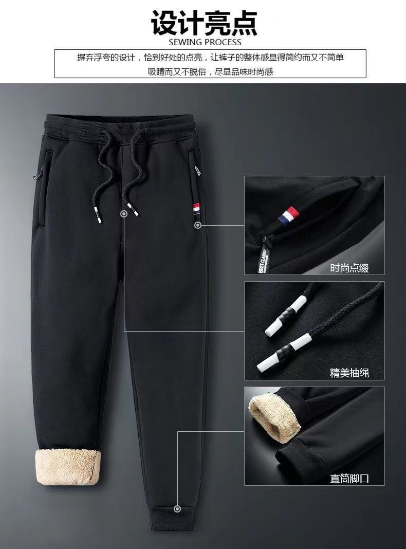 남자 기모 바지 겨울 두꺼운 따뜻한 면 바지 캐주얼 지퍼 포켓 양털 방풍 느슨한 플러스 사이즈스토어 가기