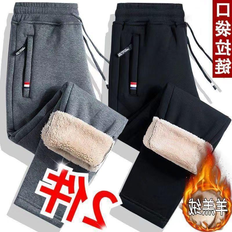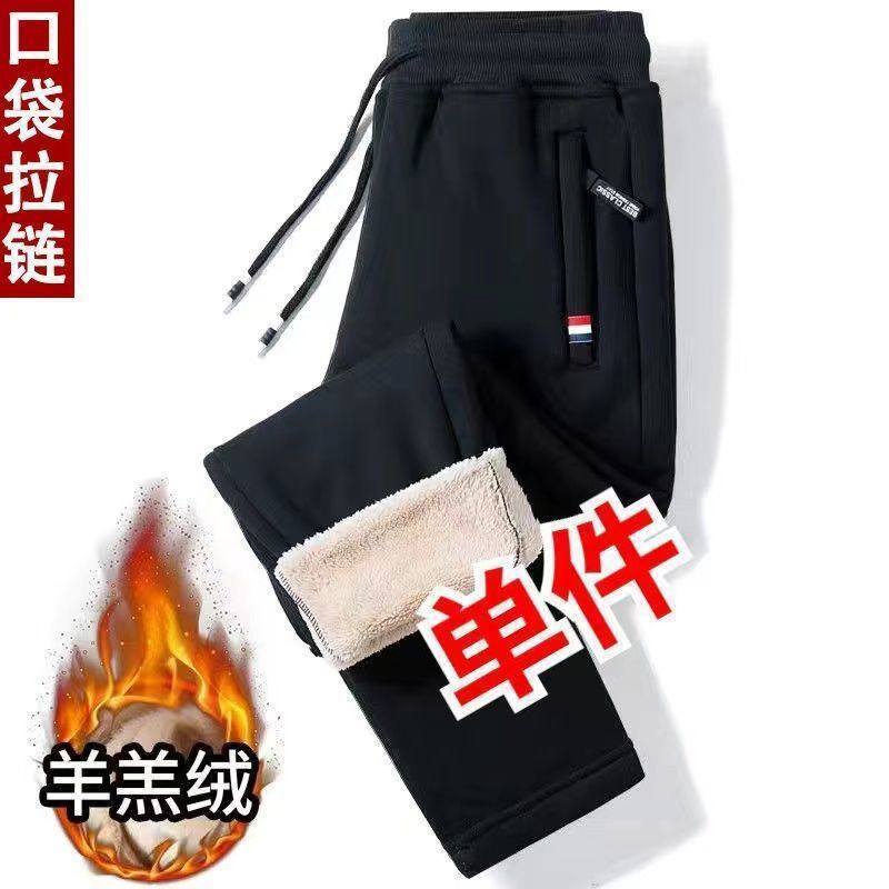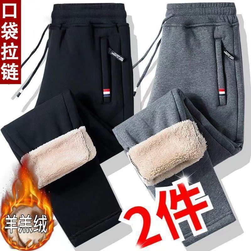 남자 기모 바지 겨울 두꺼운 따뜻한 면 바지 캐주얼 지퍼 포켓 양털 방풍 느슨한 플러스 사이즈