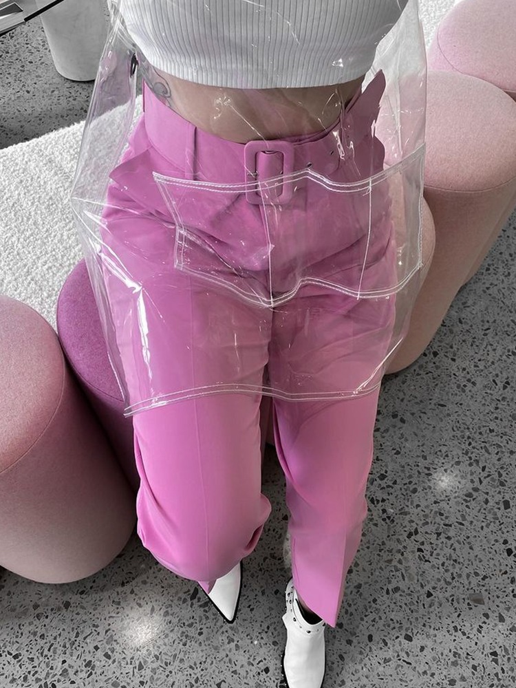 • PVC 투명 앞치마 + 보라색 스트랩 (길이 약 60cm )