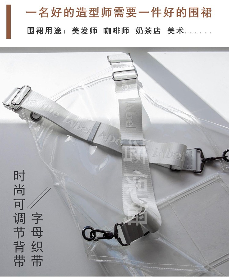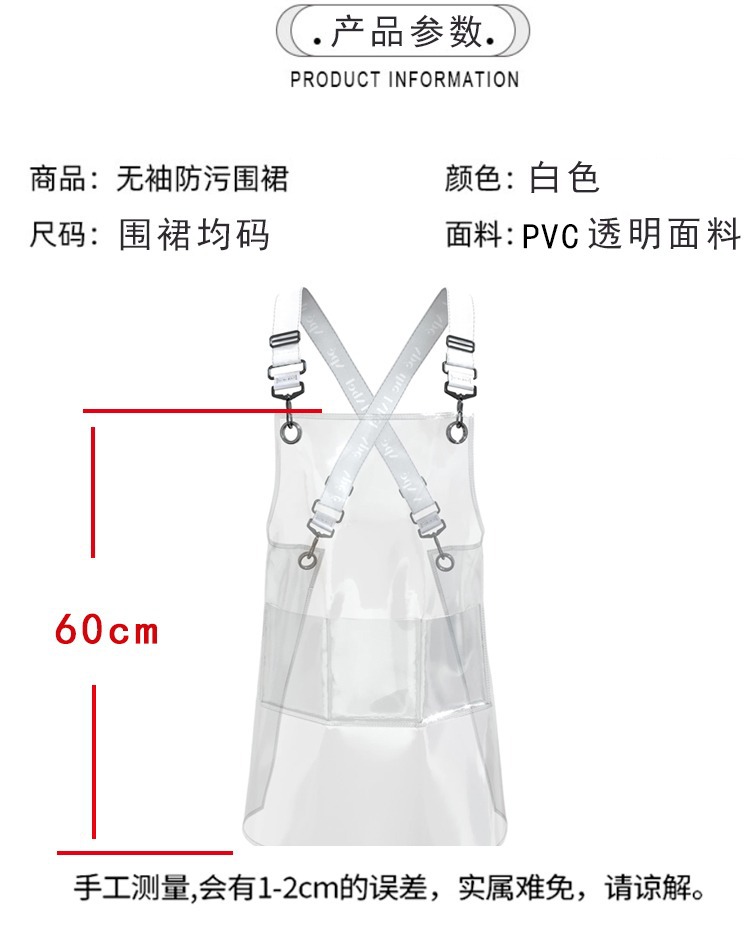 • PVC 투명 앞치마 + 검정색 문자 스트랩 (길이 약 60cm )