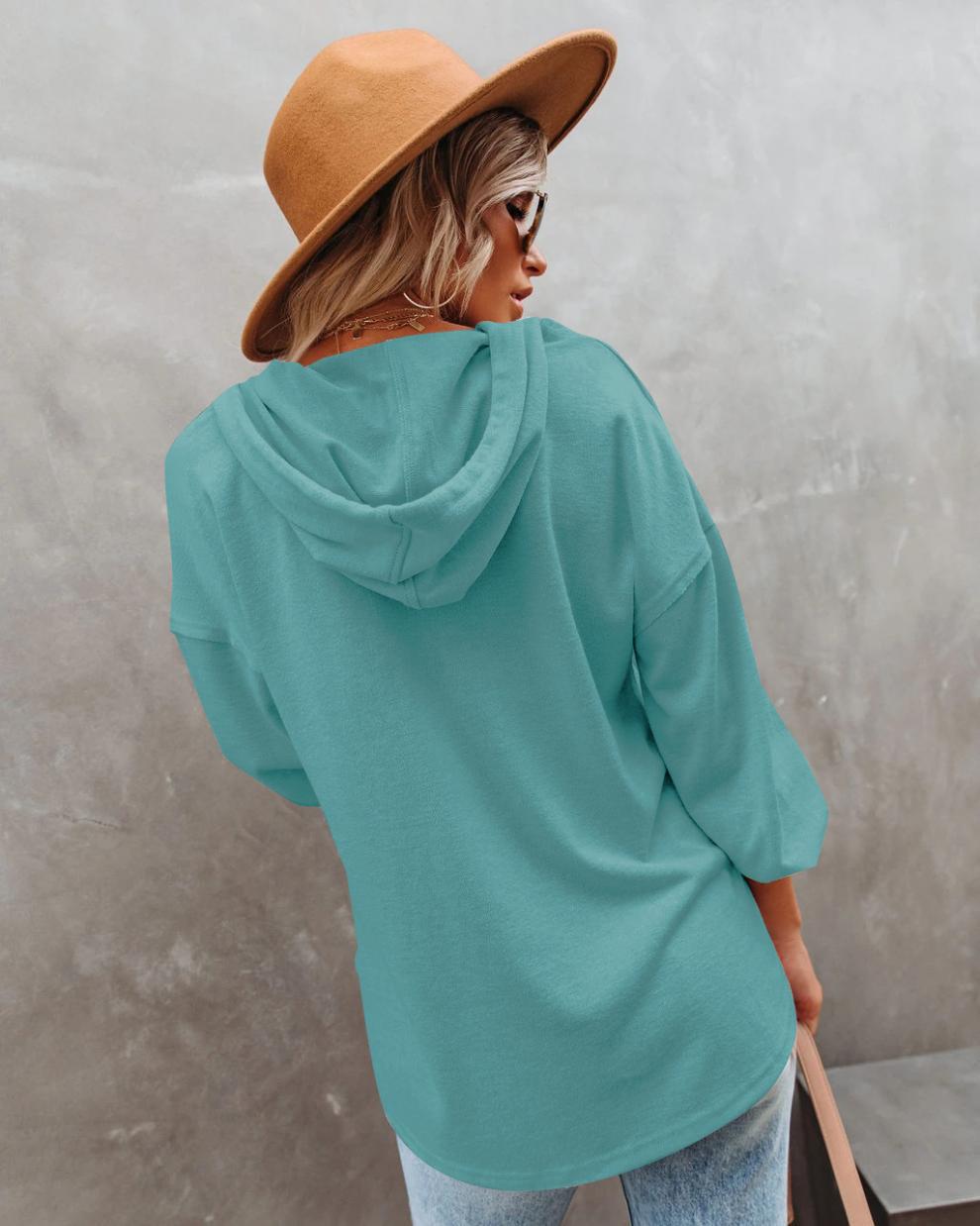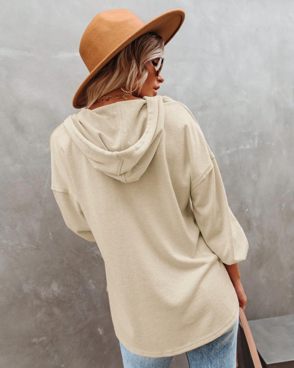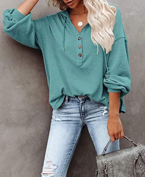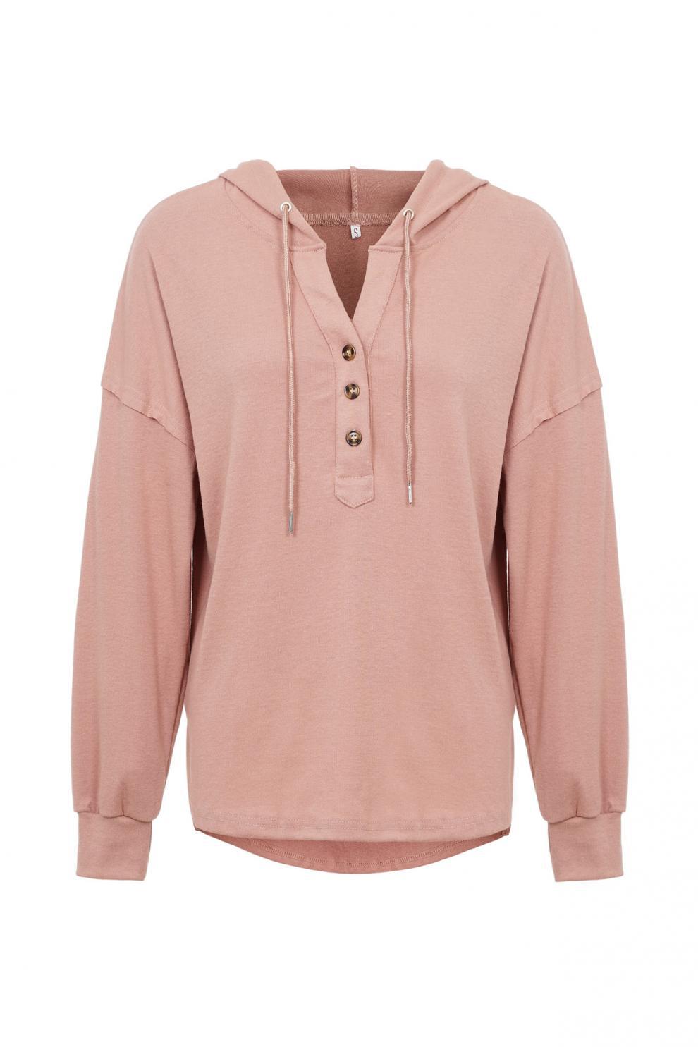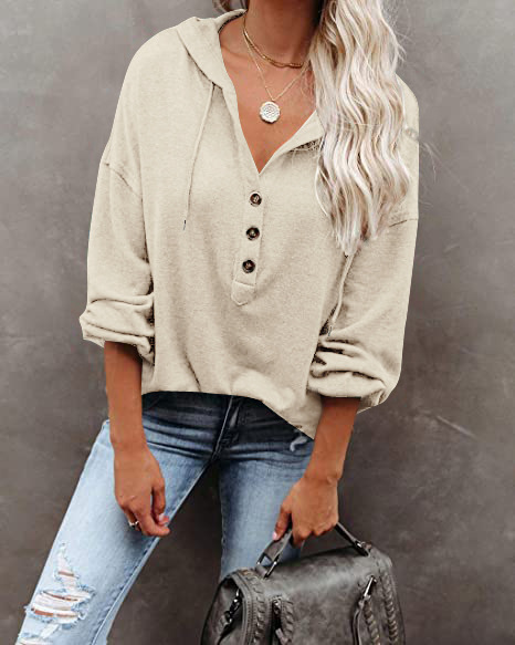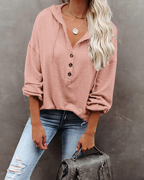 국경 간 유럽과 미국 의류 2024 가을 새로운 후드 드로스트링 긴팔 스웨트 셔츠 v 넥 캐주얼 루즈 여성스토어 가기