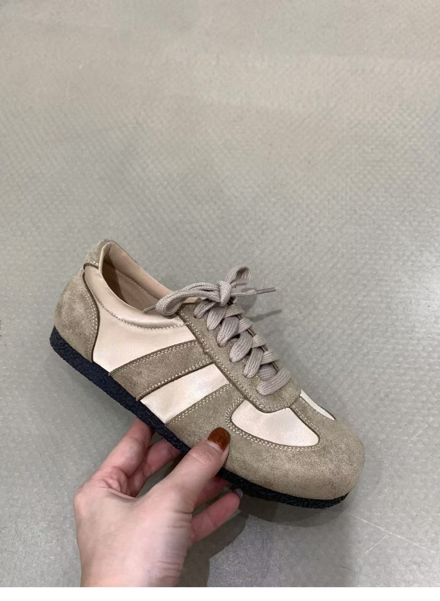 두꺼운 바닥 가죽 독일 훈련 신발 여성 신발 2024 새로운 가을과 겨울 캐주얼 운동화 조커 증가 흰색 신발스토어 가기