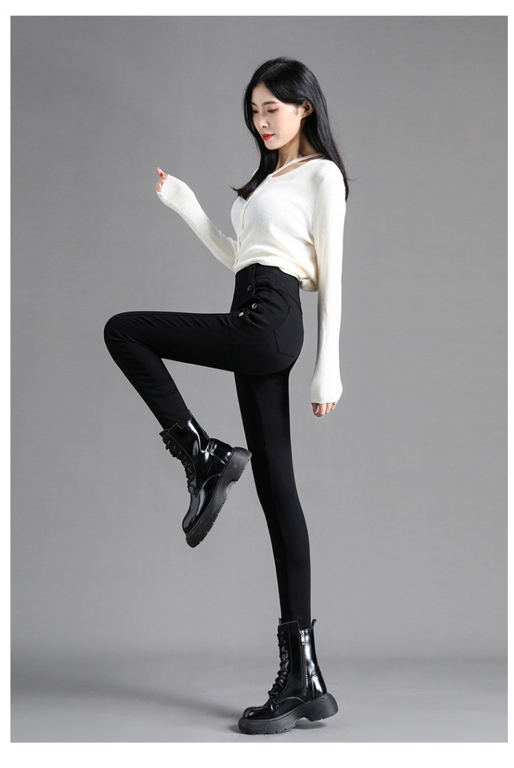 높은 허리 청바지 여성의 2024 새로운 가을과 겨울 플러스 사이즈 통통녀 슬림핏 슬리밍 긴 바지스토어 가기
