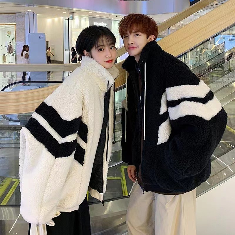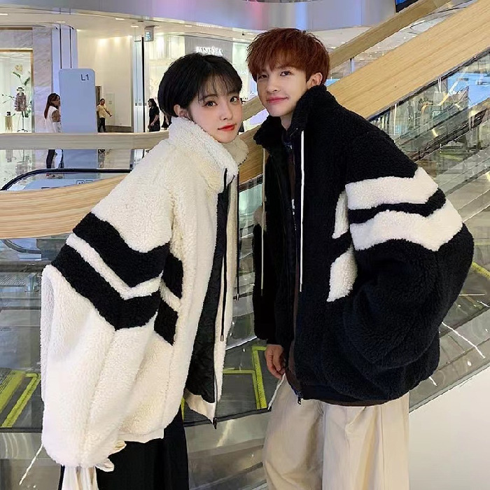 2024 가을 겨울 한국 커플 원피스 운동복 재킷 느슨한 플러스 사이즈 기모 두꺼운 패션 재킷 스웨트 셔츠스토어 가기