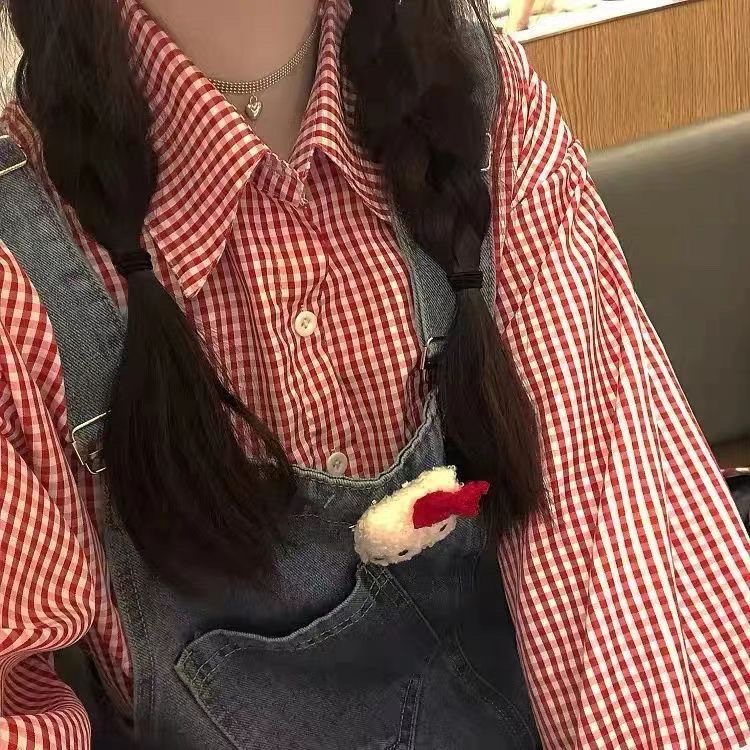 2024 봄과 가을 새로운 한국식 학생 일본인은 트렌디 한 긴팔 체크 셔츠 올매치 탑 루즈 셔츠